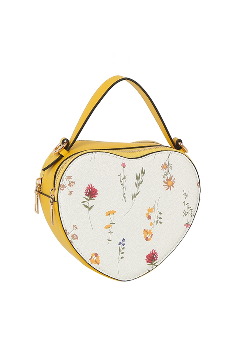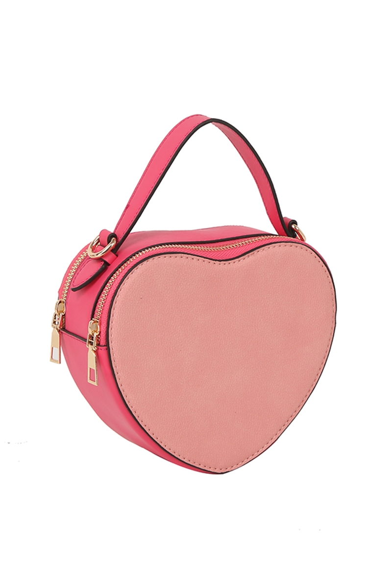 - This hand bag features a fashionable heart top handle satchel bag style. Unveil modern elegance with this subtly intricate hand bag.
