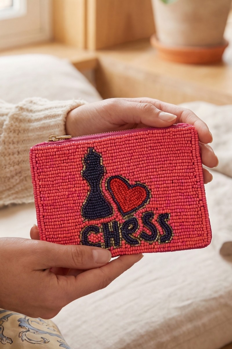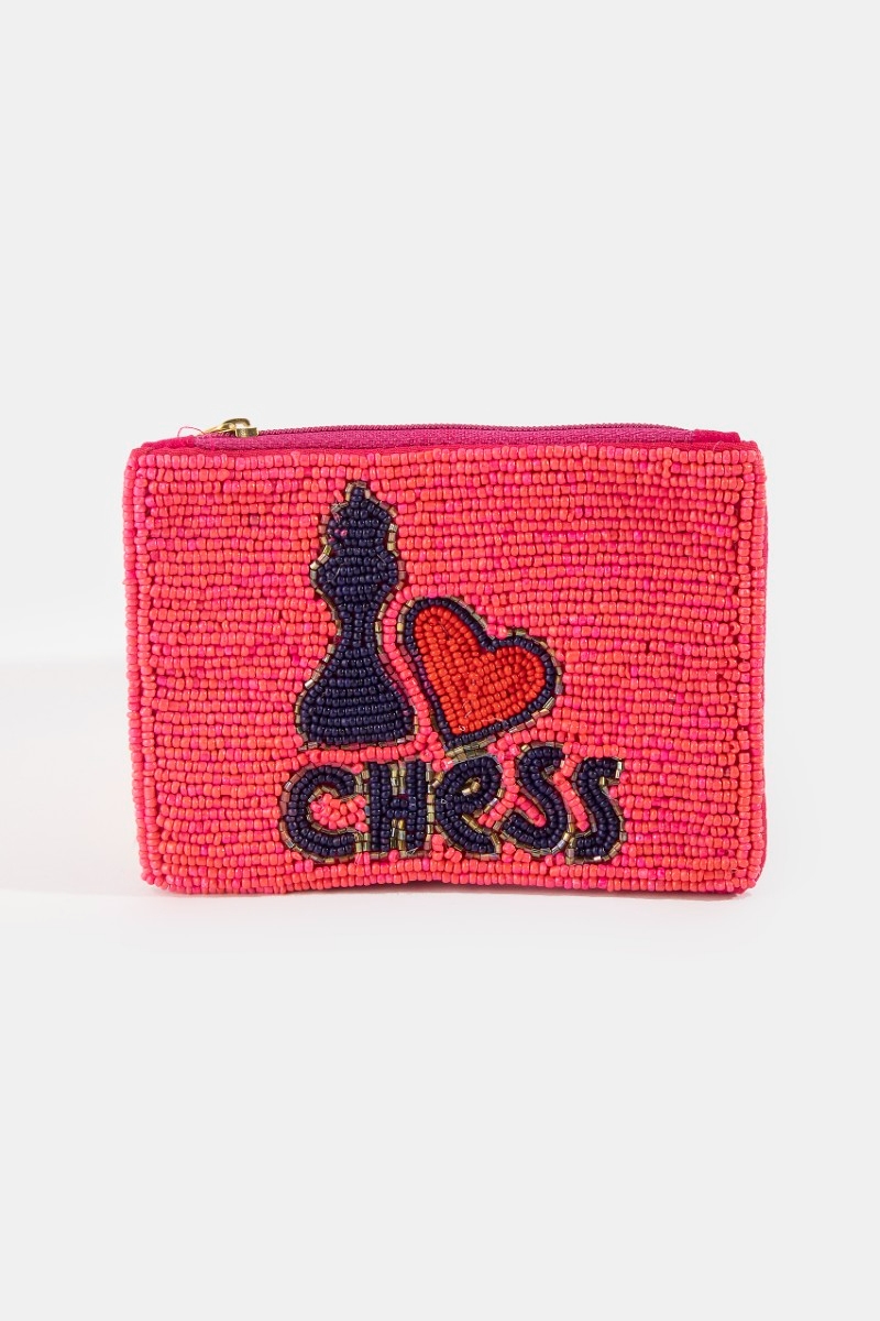 - This coin purse displays a vibrant i heart chess beaded zip style. Immerse yourself in the details of design, as this coin purse effortlessly becomes a conversation starter.