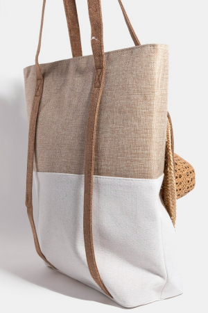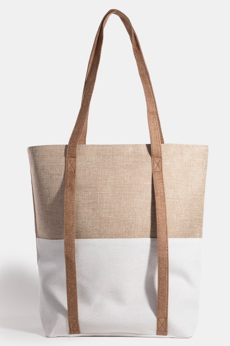 - This tote bag introduces a unique large two tone canvas style. Indulge in the artistry of accessorizing with this unique piece.