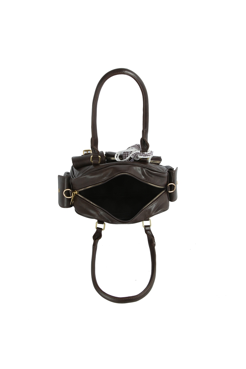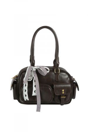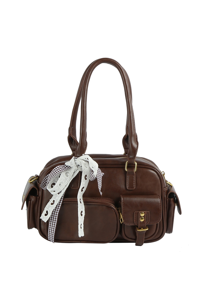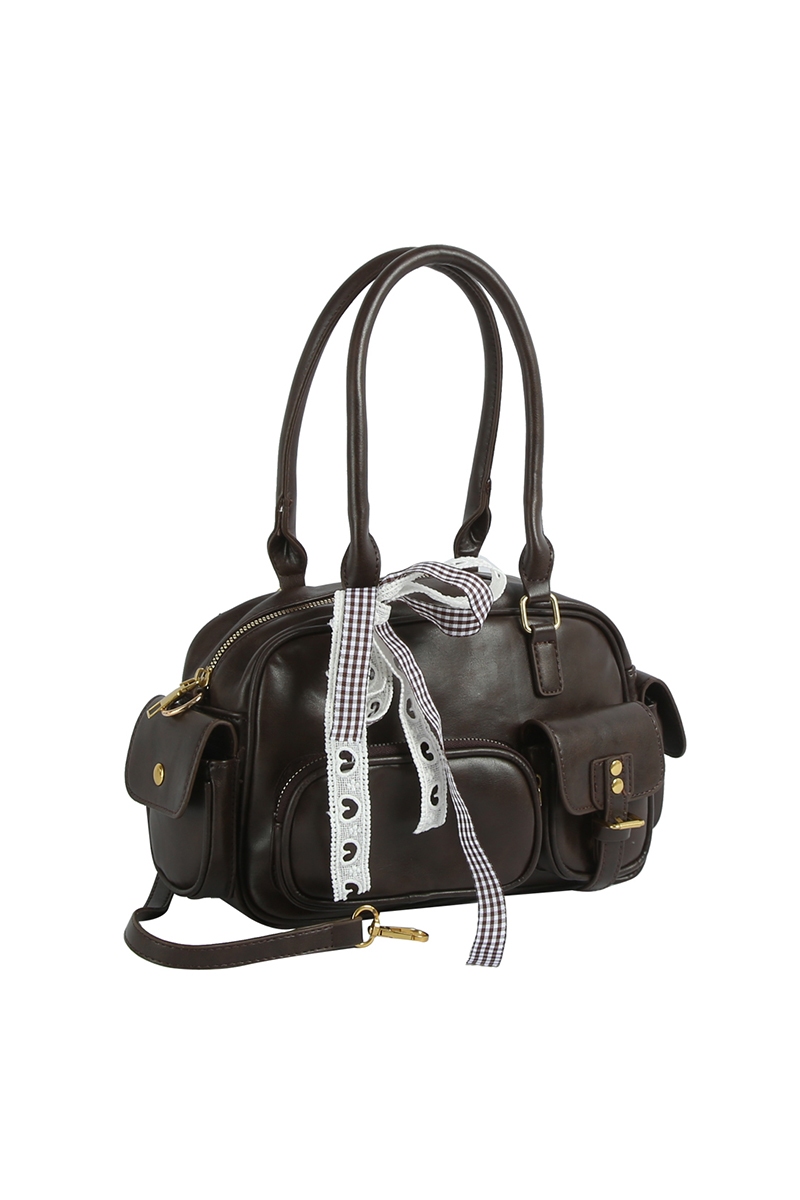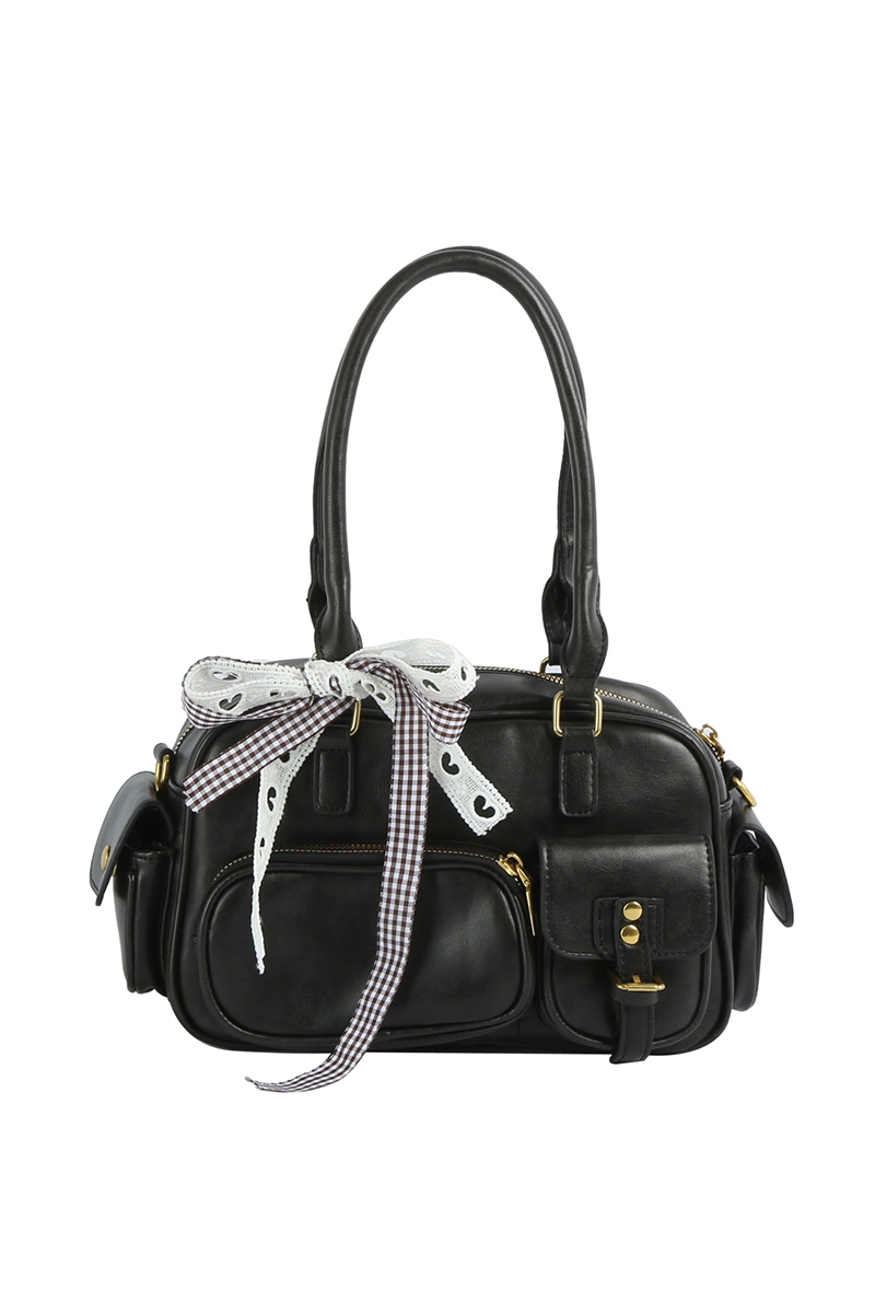 - This hand bag brings a luxurious multi pocket faux leather with ribbon bow charm style. Discover the perfect balance of subtlety and flair as this hand bag effortlessly completes your look.
