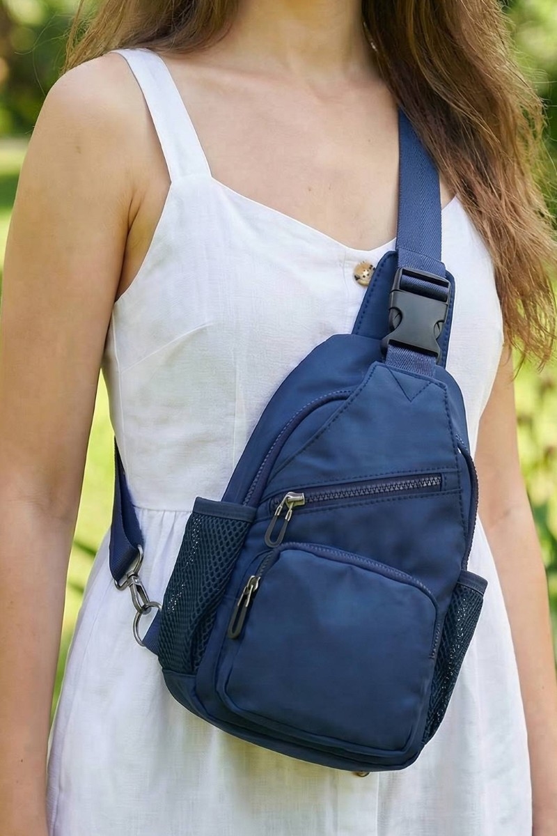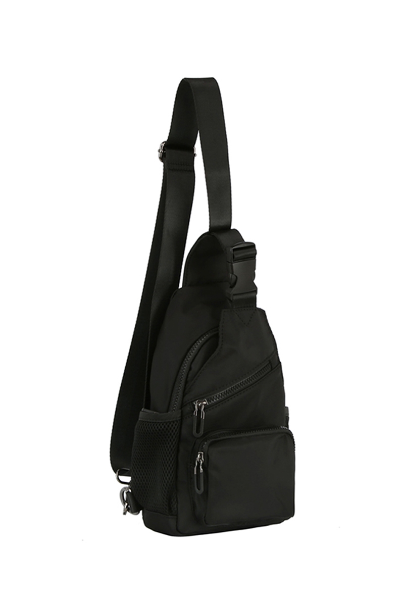 - This crossbody bag showcases a unique multi pocket nylon sling style. Redefine your look effortlessly with this standout, on-trend piece.