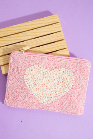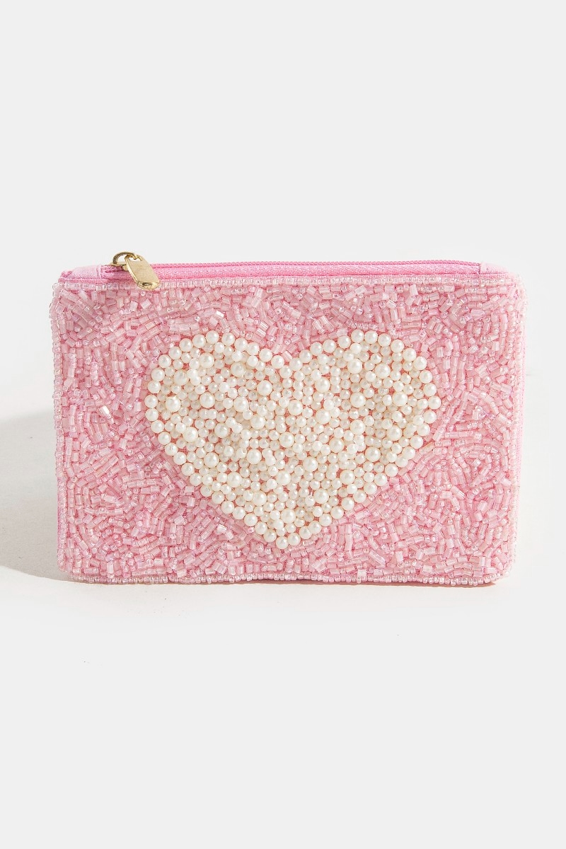 - This coin purse showcases a timeless pearl heart seed beaded style. Witness the transformative power of accessories as this piece effortlessly redefines your fashion narrative.