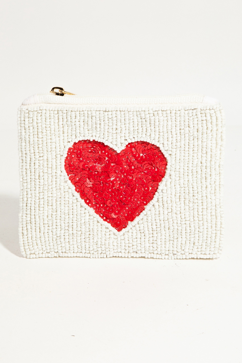 - This introduces a unique red heart white beaded coin purse style. Witness the perfect fusion of style and functionality as this effortlessly complements your lifestyle.
