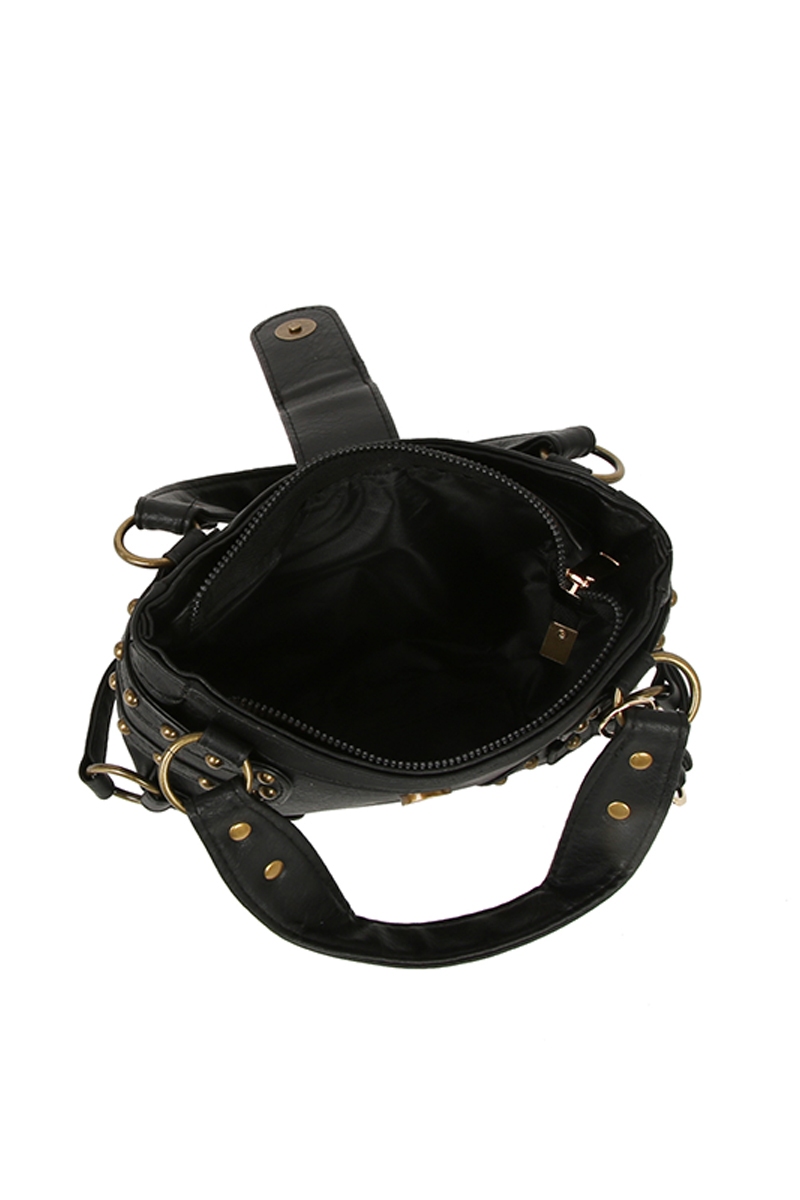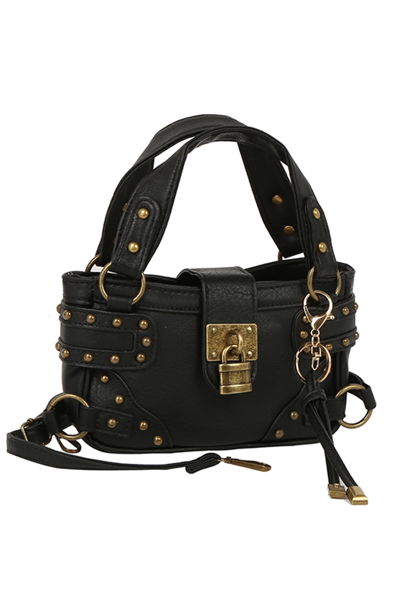 - This crossbody bag displays a fashionable rivet and lock satchel style. Delight in the nuanced details that make this crossbody bag a testament to fine design and impeccable taste.
