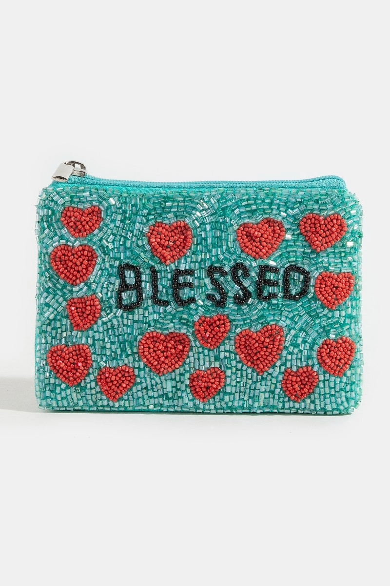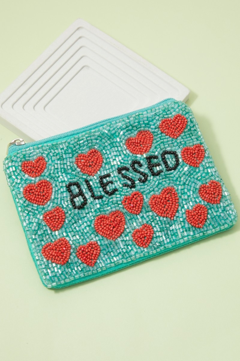 - This coin purse displays a fashionable seed beaded blessed hearts style. Savor the craftsmanship that goes beyond the ordinary, as this coin purse effortlessly captivates attention.
