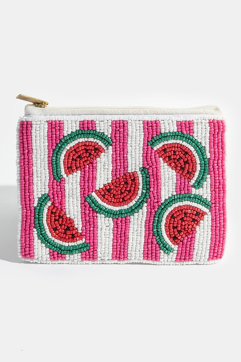 • This coin purse brings a luxurious seed beaded striped watermelon fruit style. Revel in the intricate design that effortlessly distinguishes this coin purse, making it a statement piece.