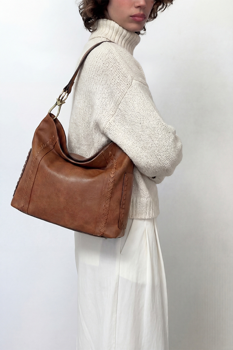 • This shoulder bag introduces a stunning fashion whipstitch bucket style. Celebrate the art of accessorizing with this piece that effortlessly encapsulates modern trends.