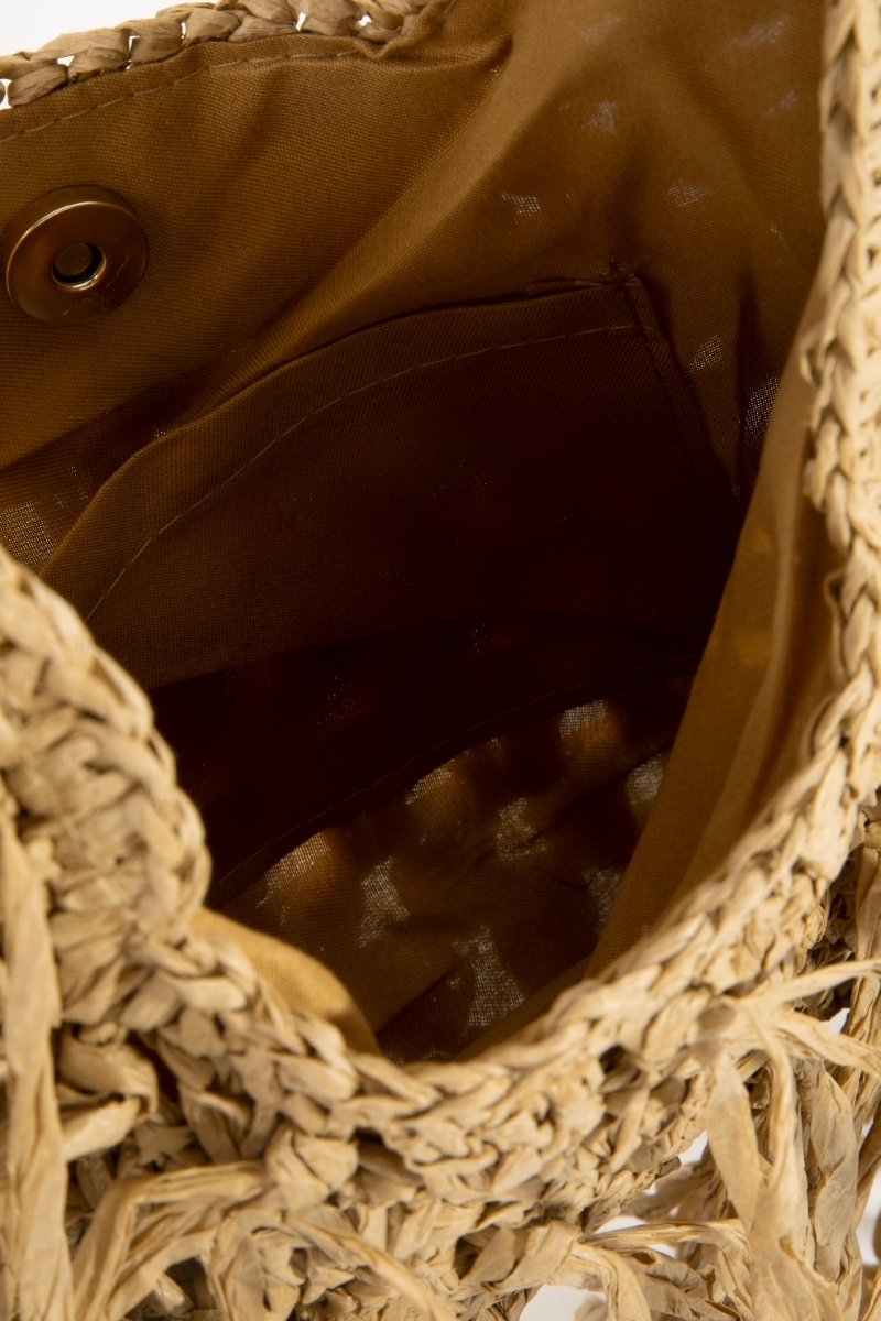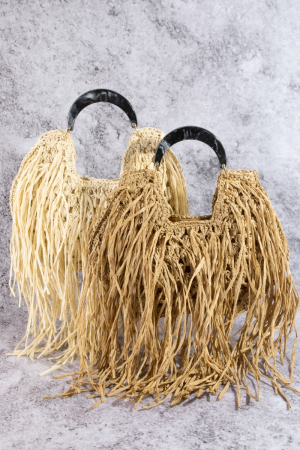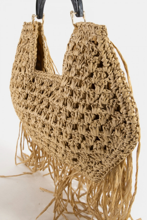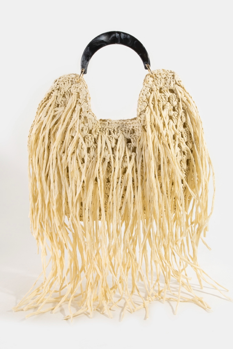 • This shoulder bag brings a unique marble resin handle straw weave and fringe style. Discover the perfect balance of functionality and fashion.