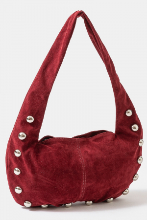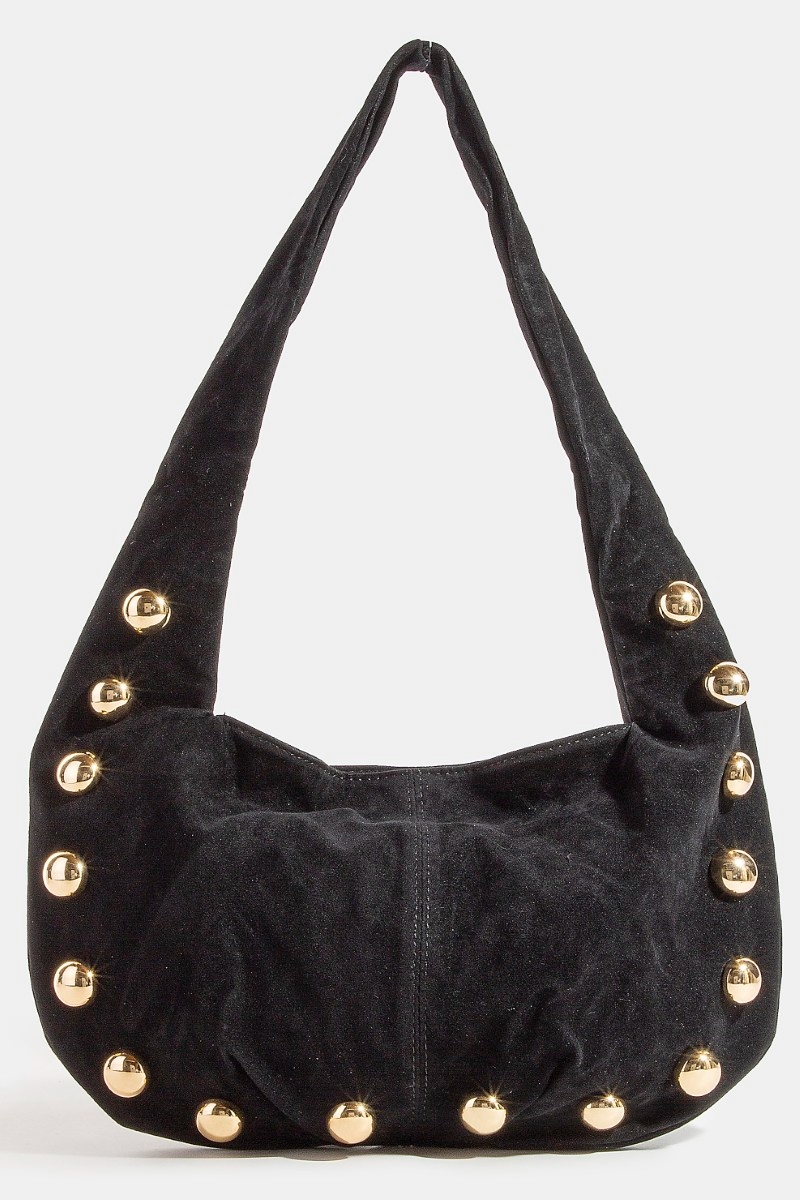 • This shoulder bag introduces a unique metallic sphere studded soft hobo style. Revel in the intricate design that effortlessly distinguishes this shoulder bag, making it a statement piece.