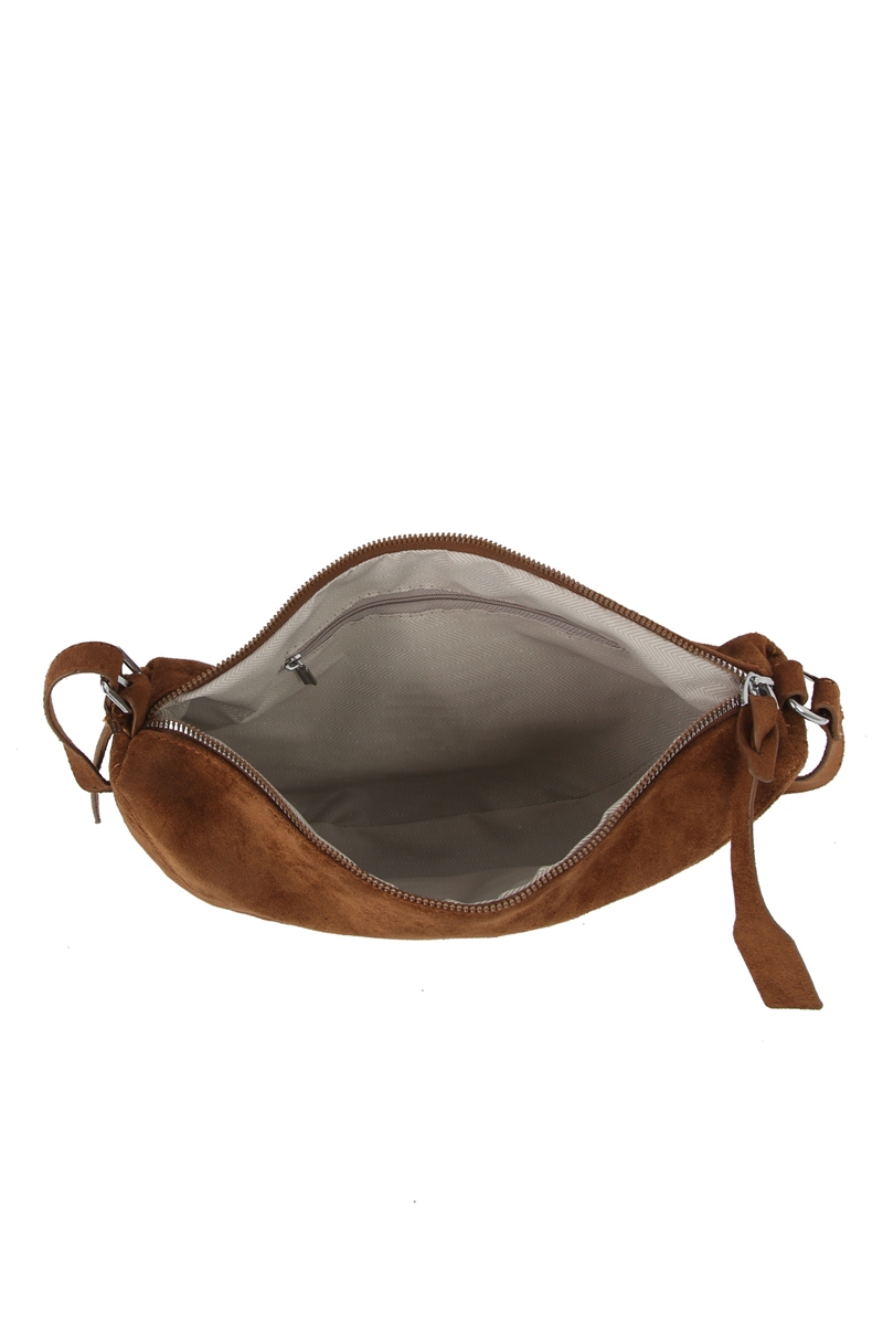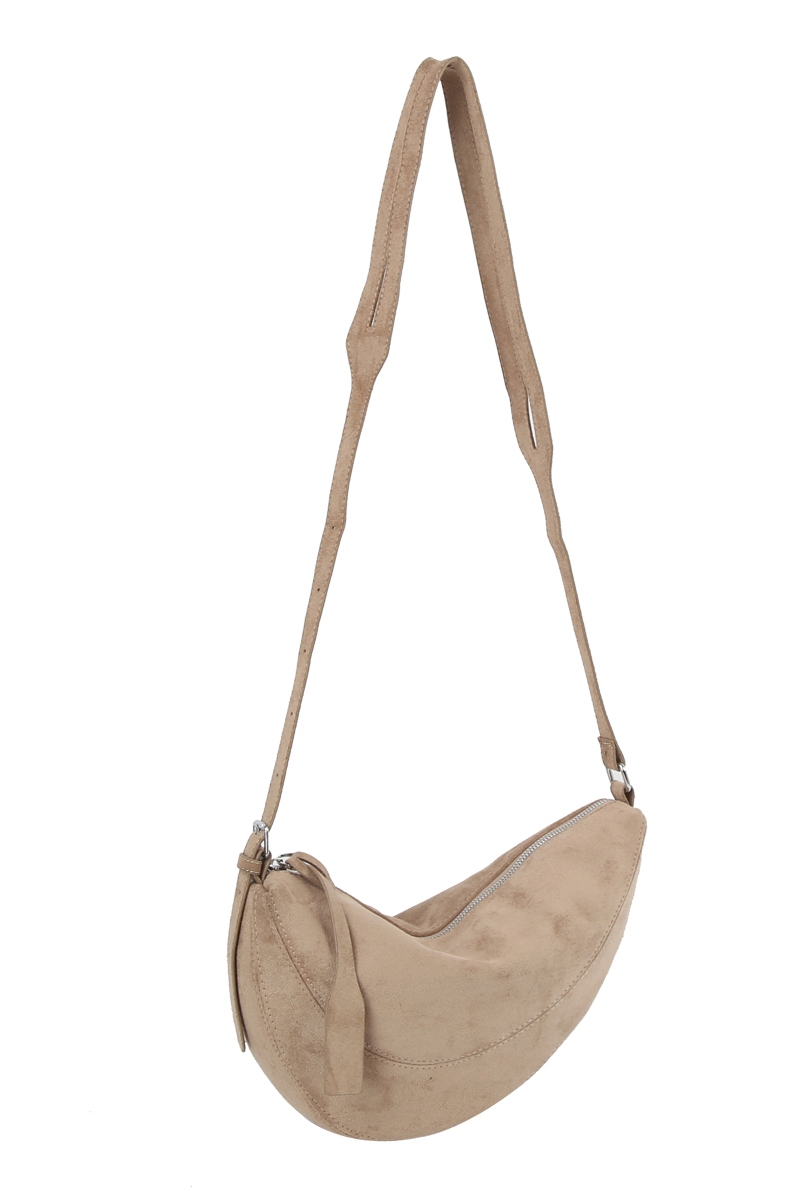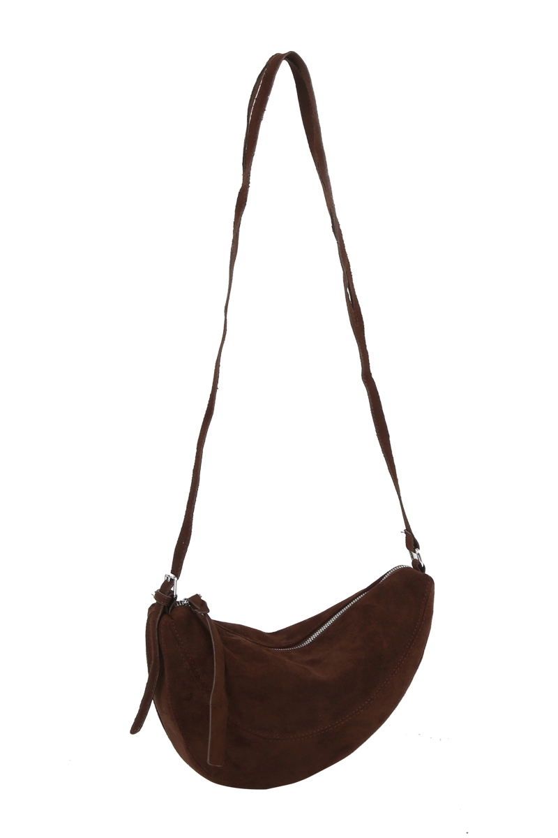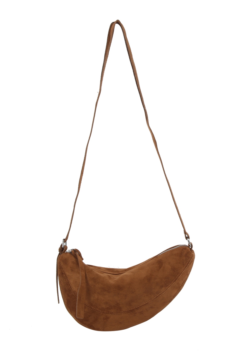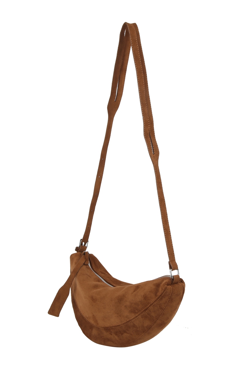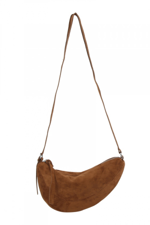 - This shoulder bag introduces a stunning suede crescent panel style. Experience the joy of accessorizing with this piece that effortlessly combines versatility and charm.