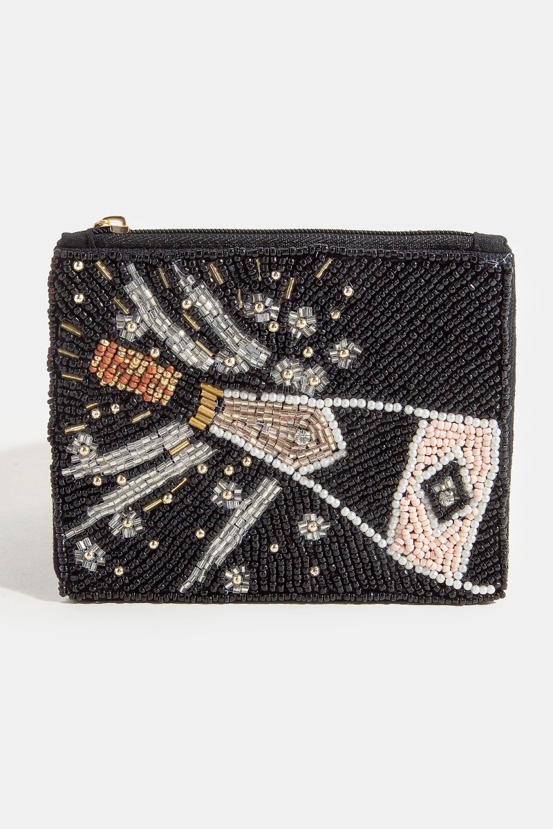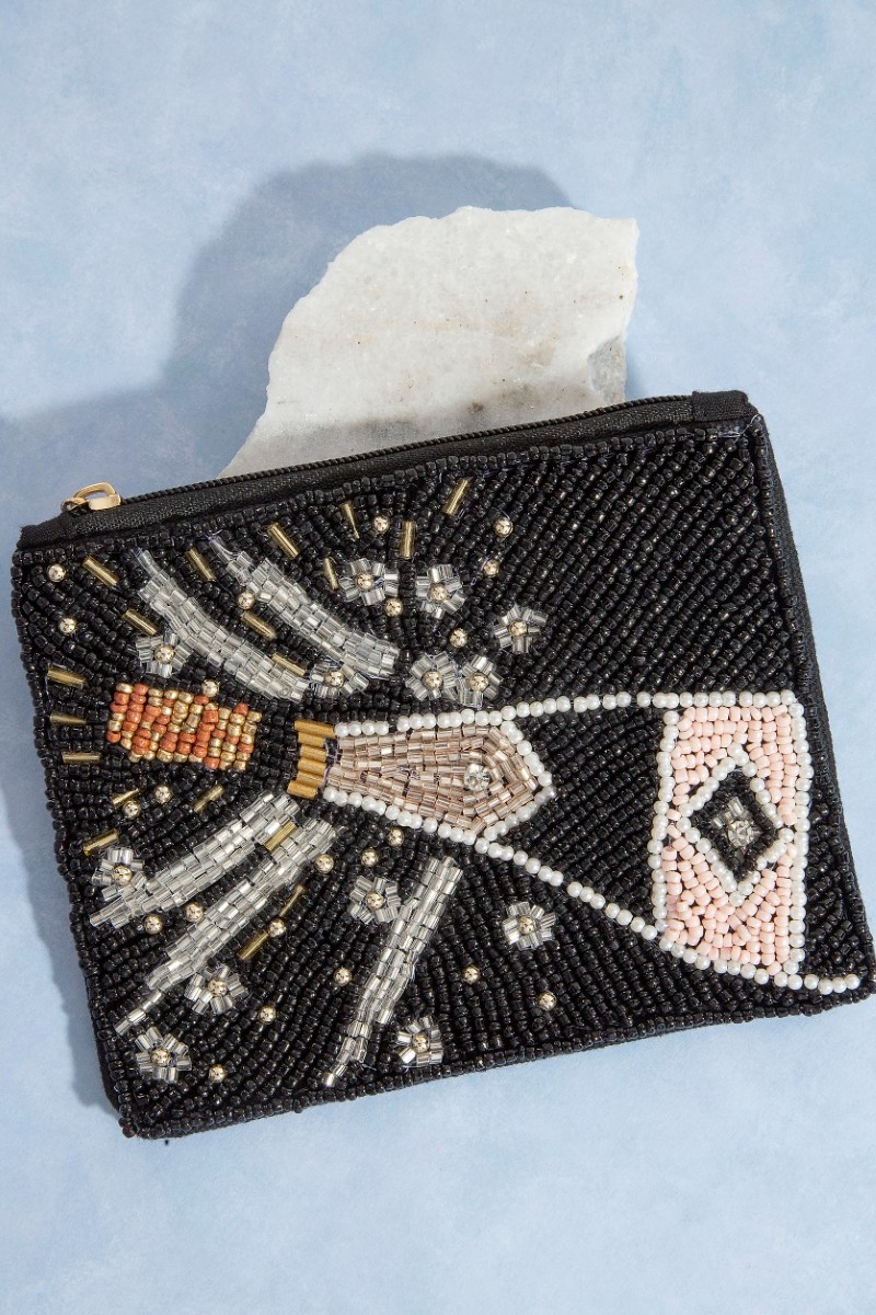 - This coin purse introduces a stunning sparkling champagne bottle seed beaded style. Indulge in the artistry of accessorizing with this unique piece.