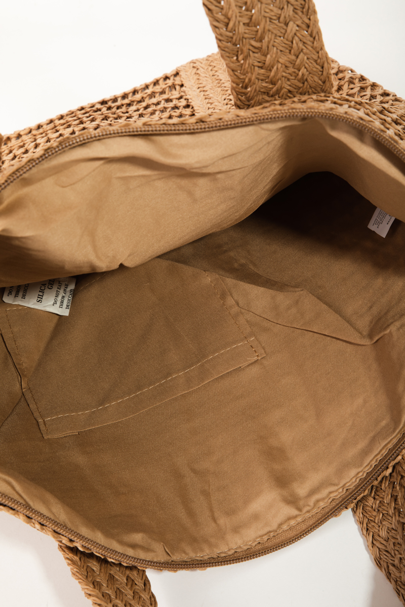 - This tote bag introduces a stunning straw knit zipper style. Explore a blend of classic charm and contemporary flair.