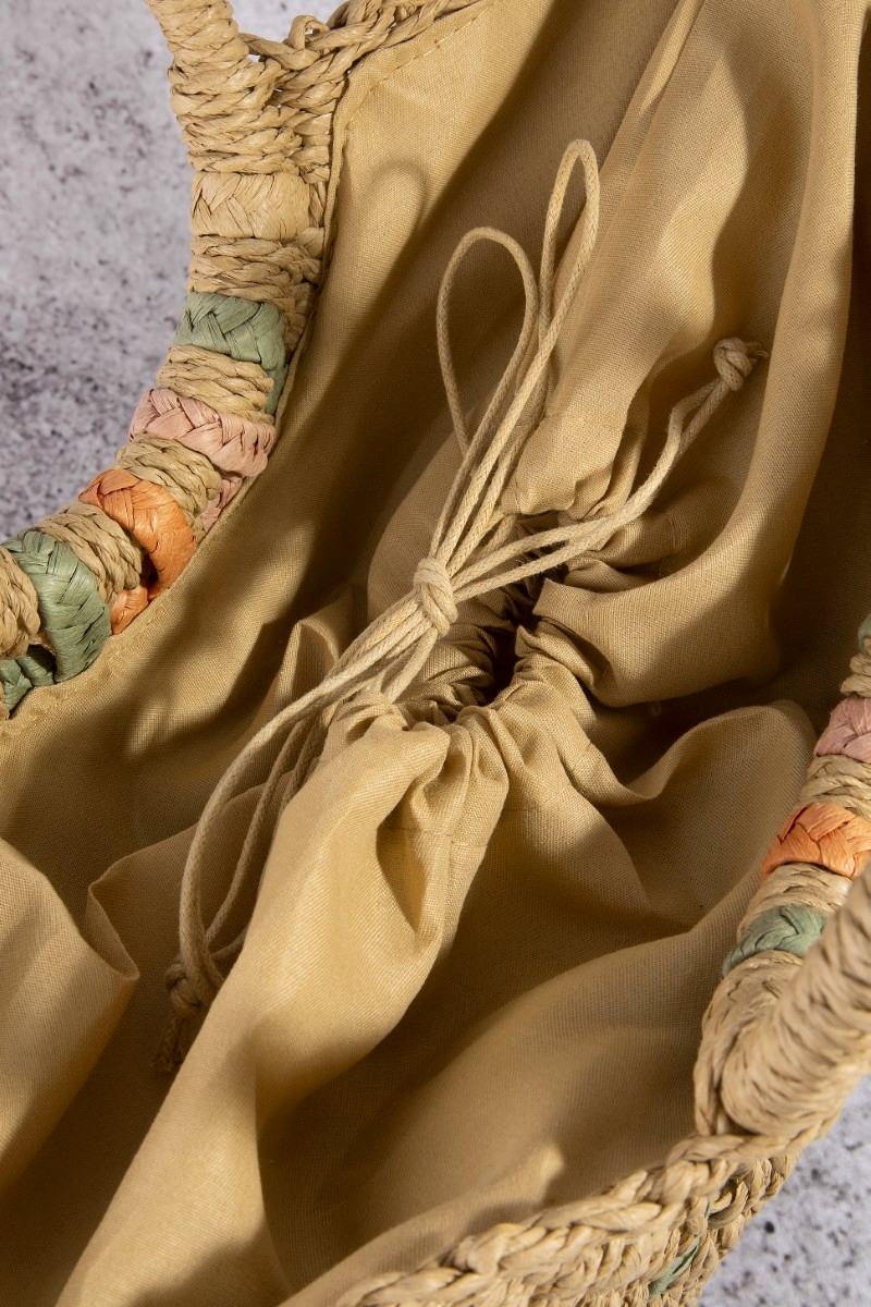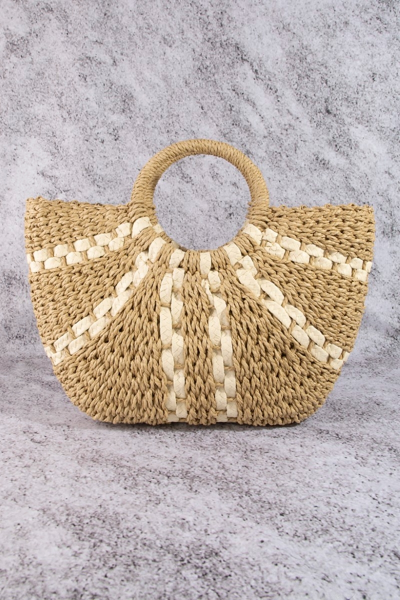- This tote bag showcases a unique striped straw weave round rope handle style. Celebrate individuality with this tote bag that effortlessly expresses your unique sense of style.