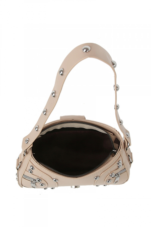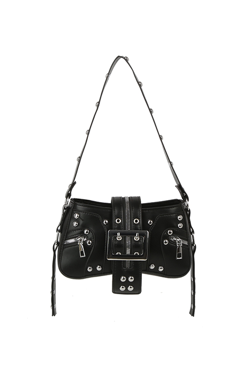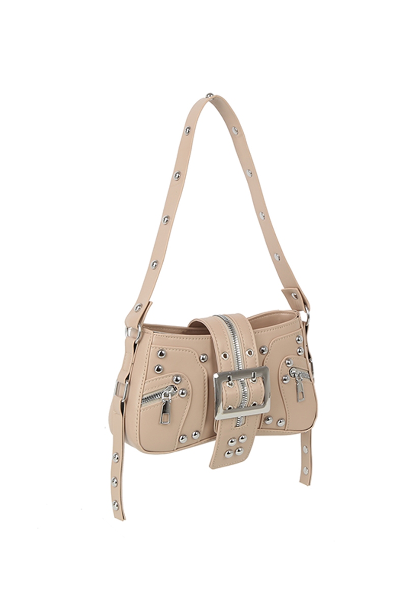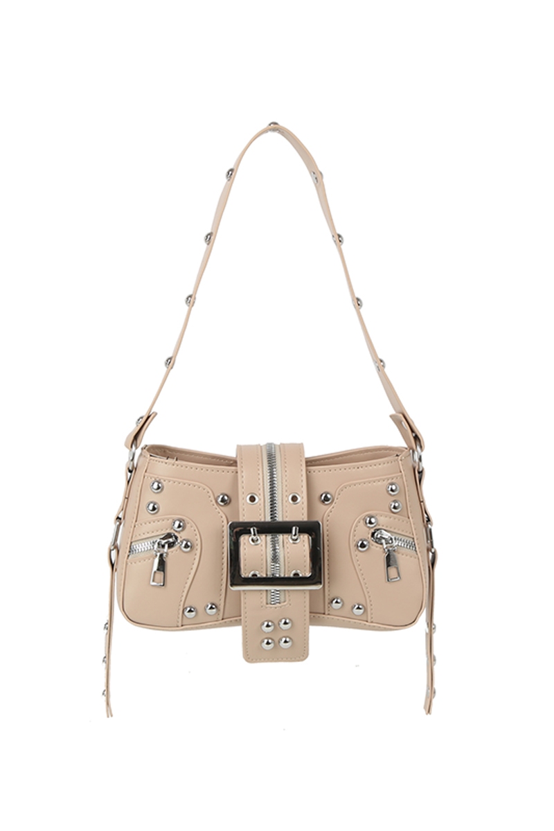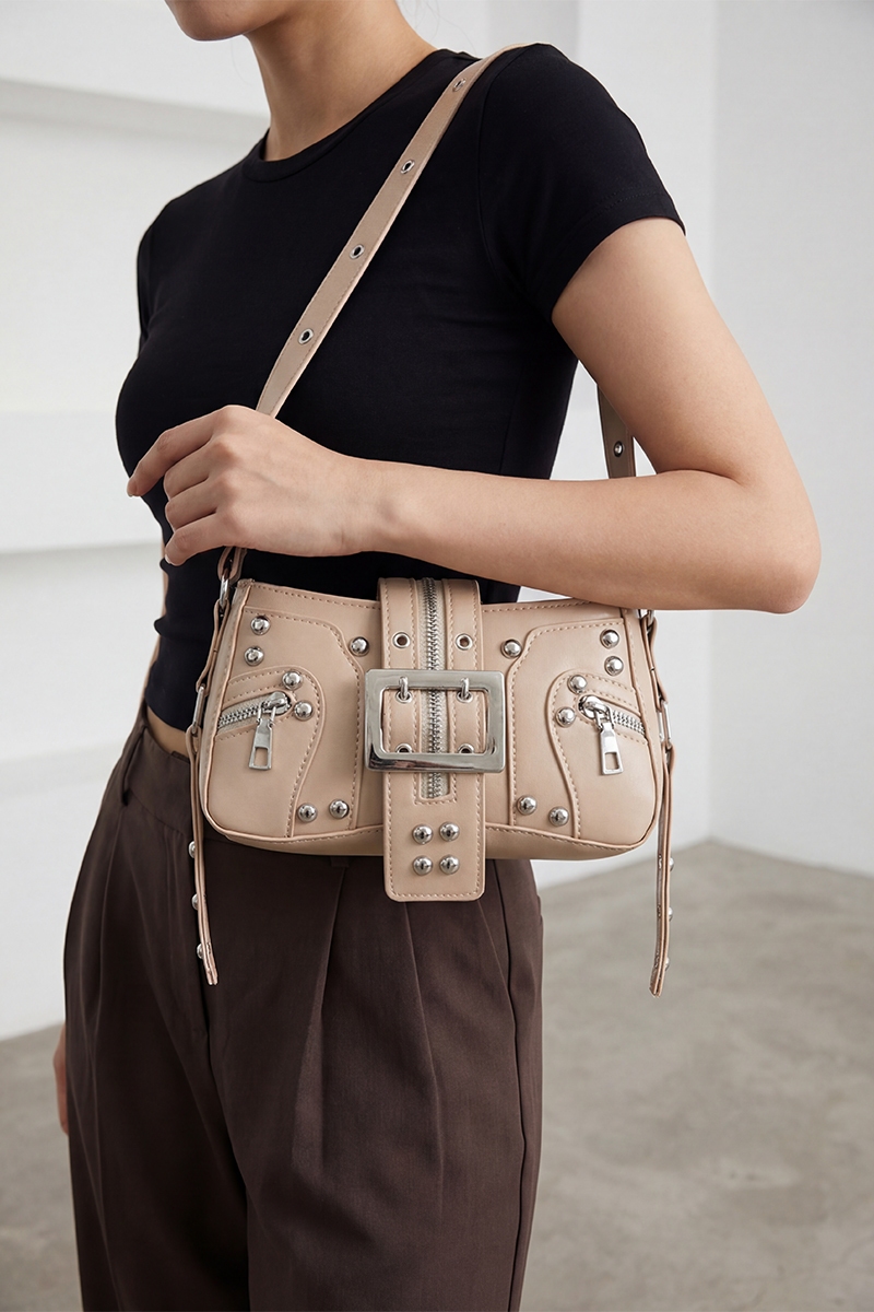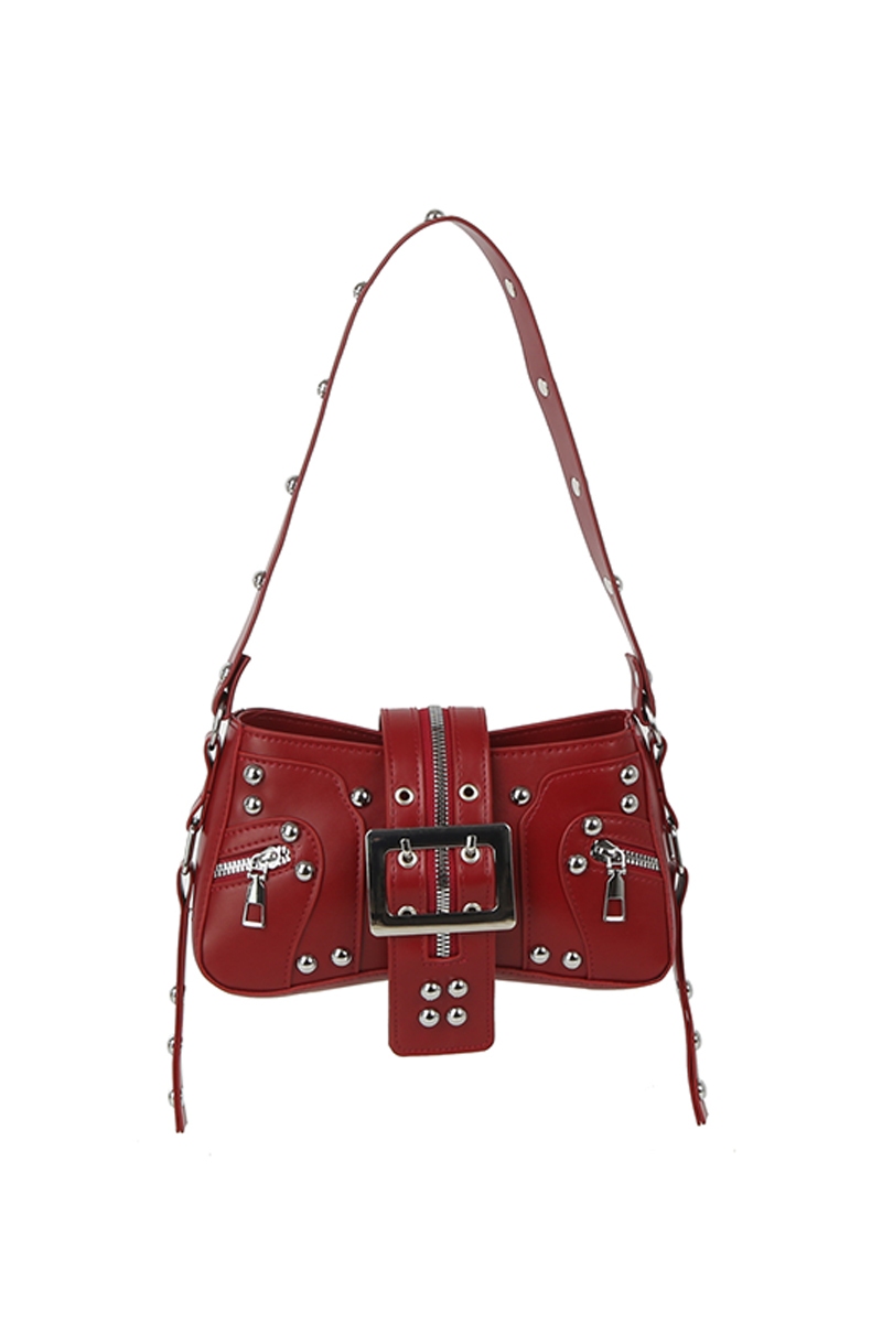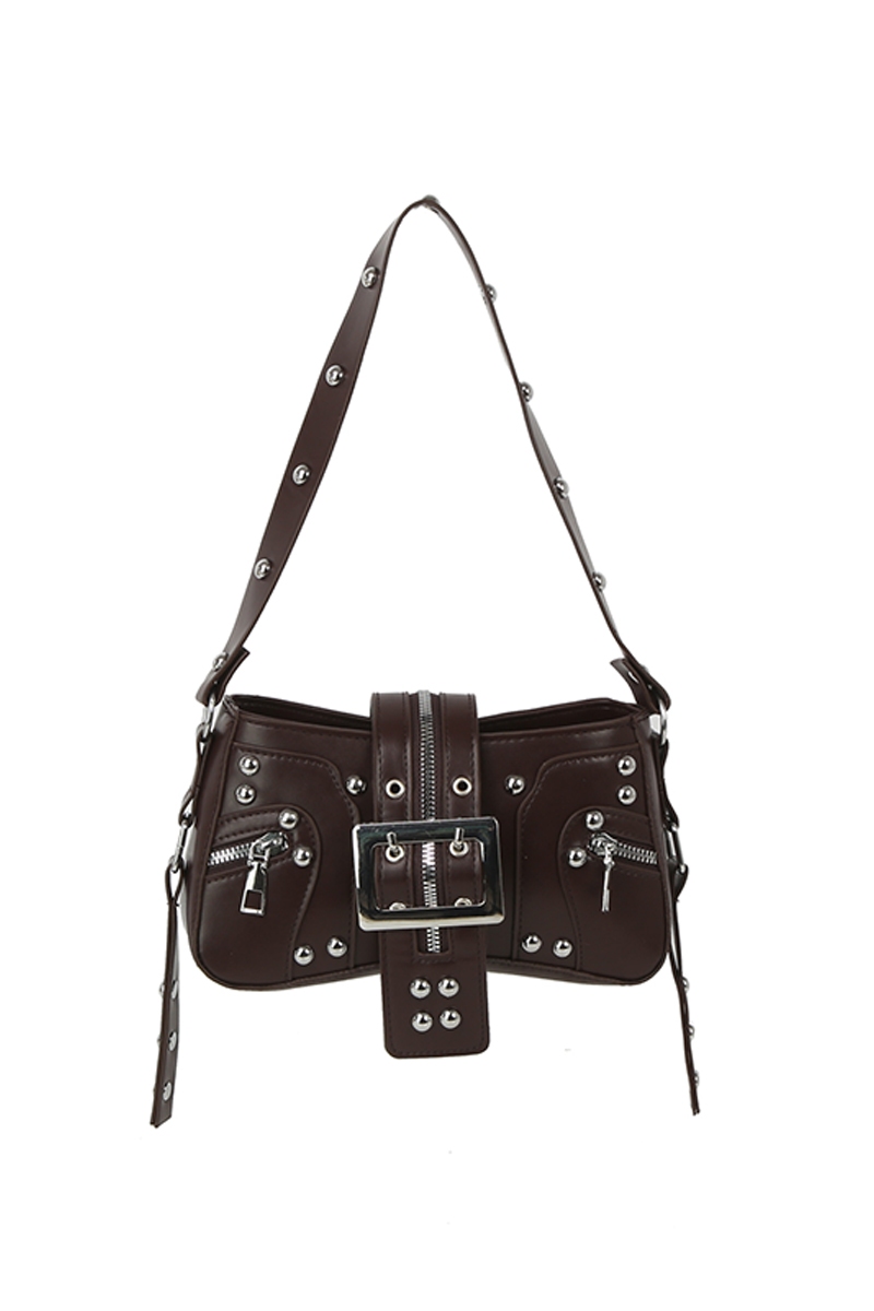 - This shoulder bag displays a vibrant studded buckle flap style. Immerse yourself in the details of design, as this shoulder bag effortlessly becomes a conversation starter.
