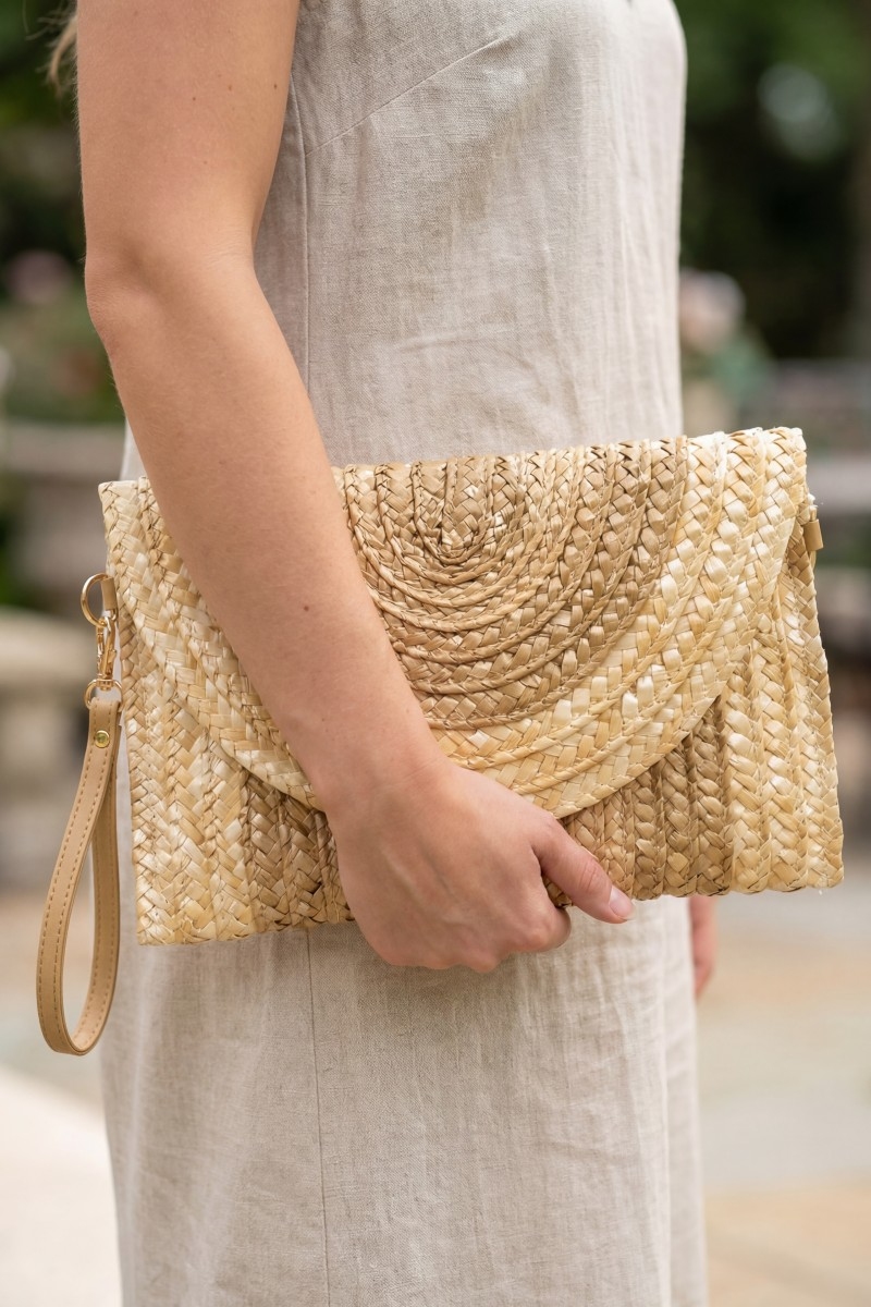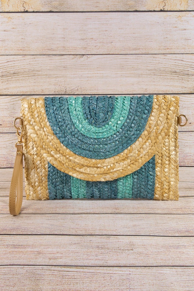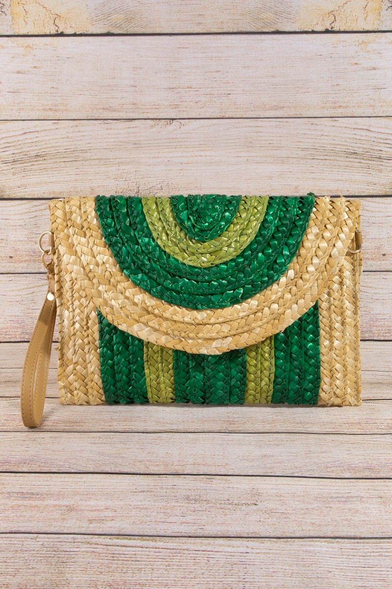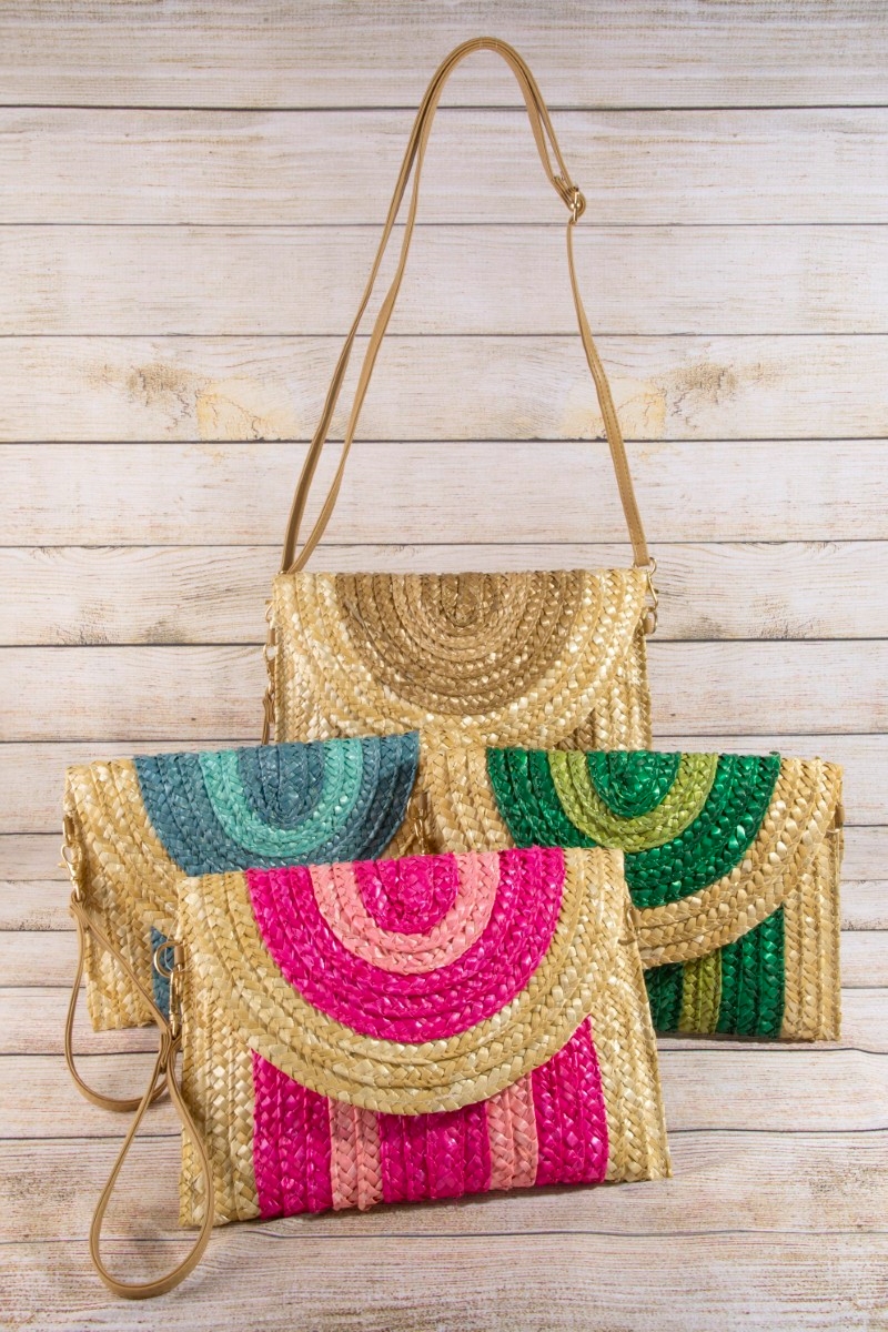 - This clutch bag displays a vibrant three tone straw style. Discover the perfect balance of subtlety and flair as this clutch bag effortlessly completes your look.