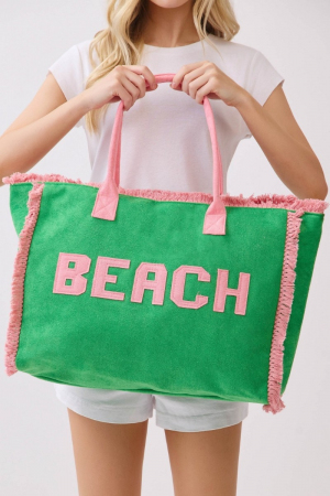- This tote bag introduces a stunning beach print fringe style. Savor the allure of detailed craftsmanship in this exquisite tote bag.