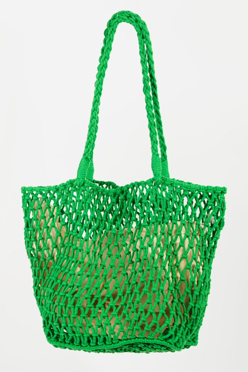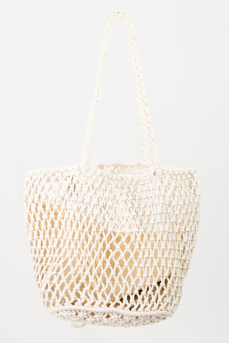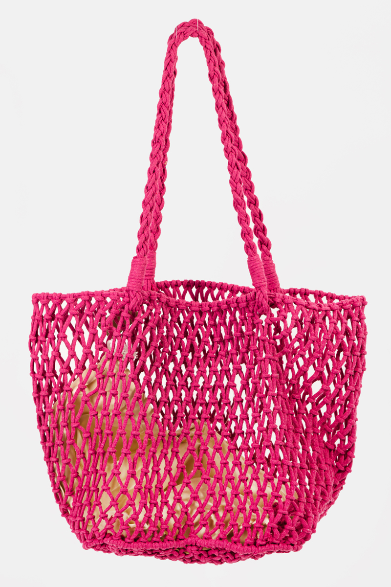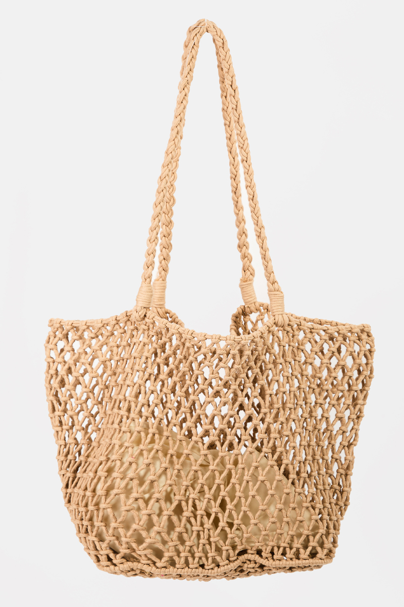 Multi Tone Straw Half Moon Round Handle Tote Bag