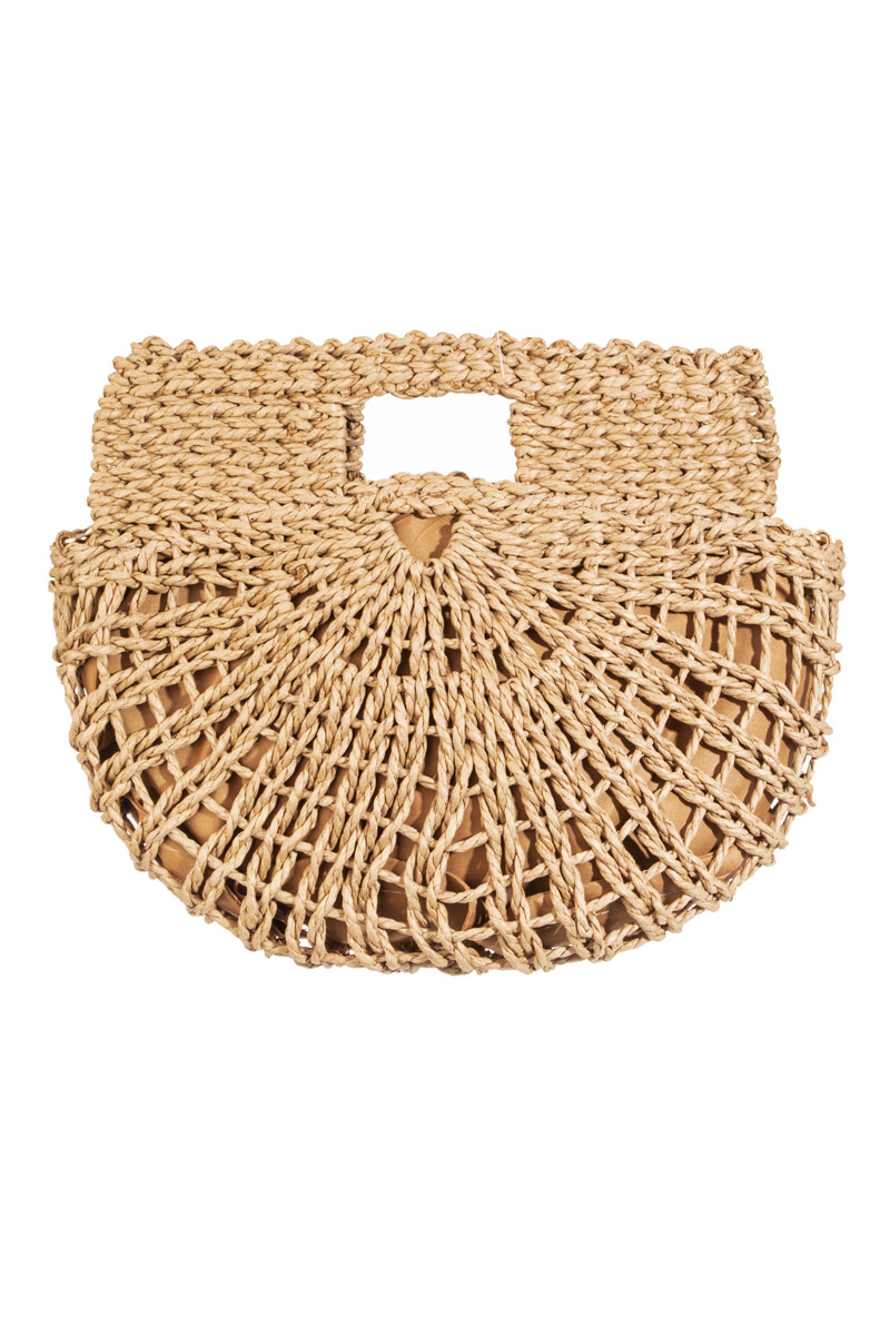 Straw Braided Half Moon Round Handle Tote Bag