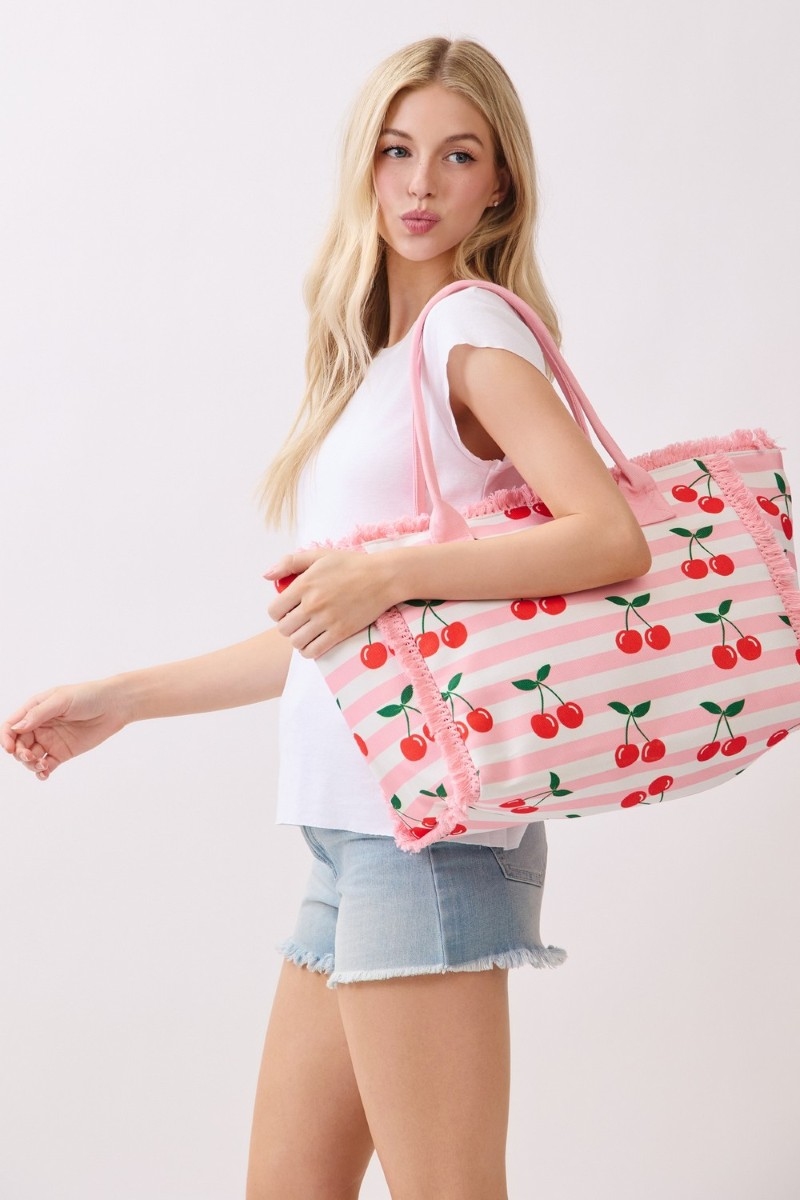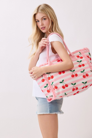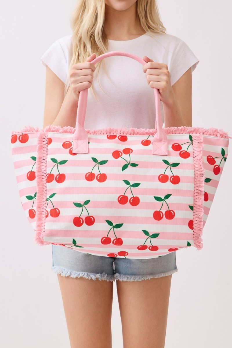 - This tote bag brings a stunning cherry striped style. Embark on a journey of sartorial refinement as this tote bag effortlessly complements your fashion sense.