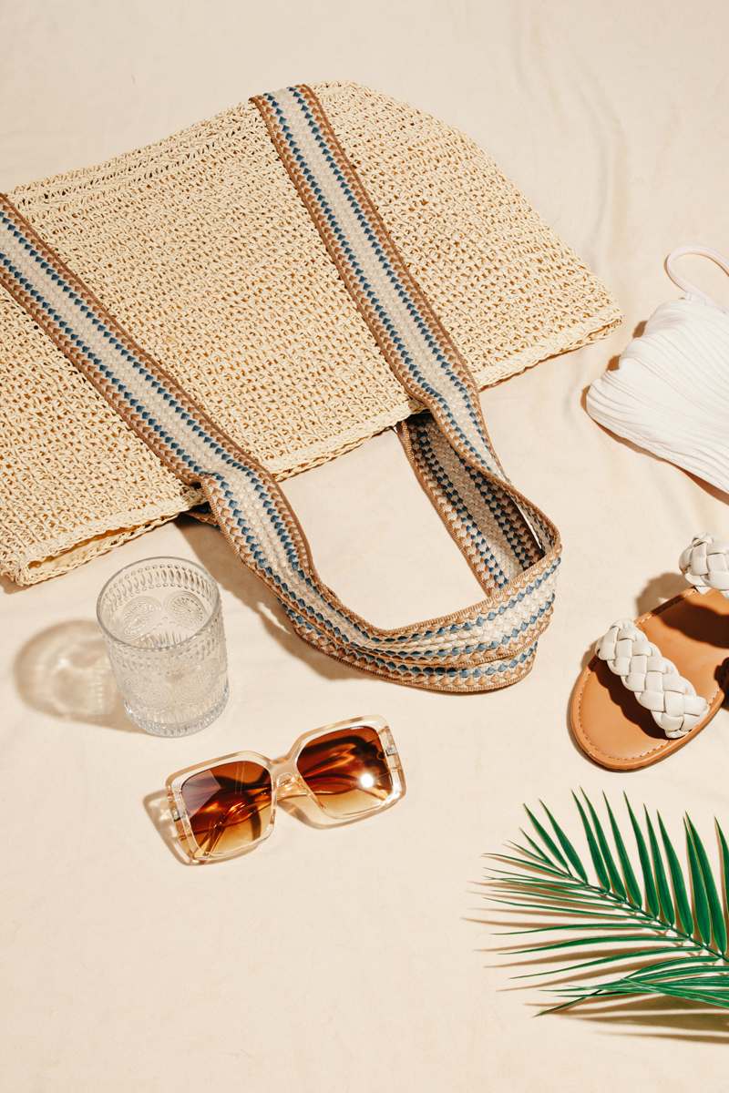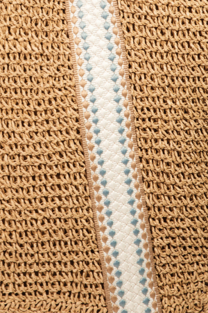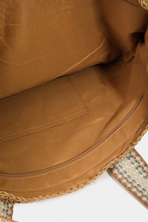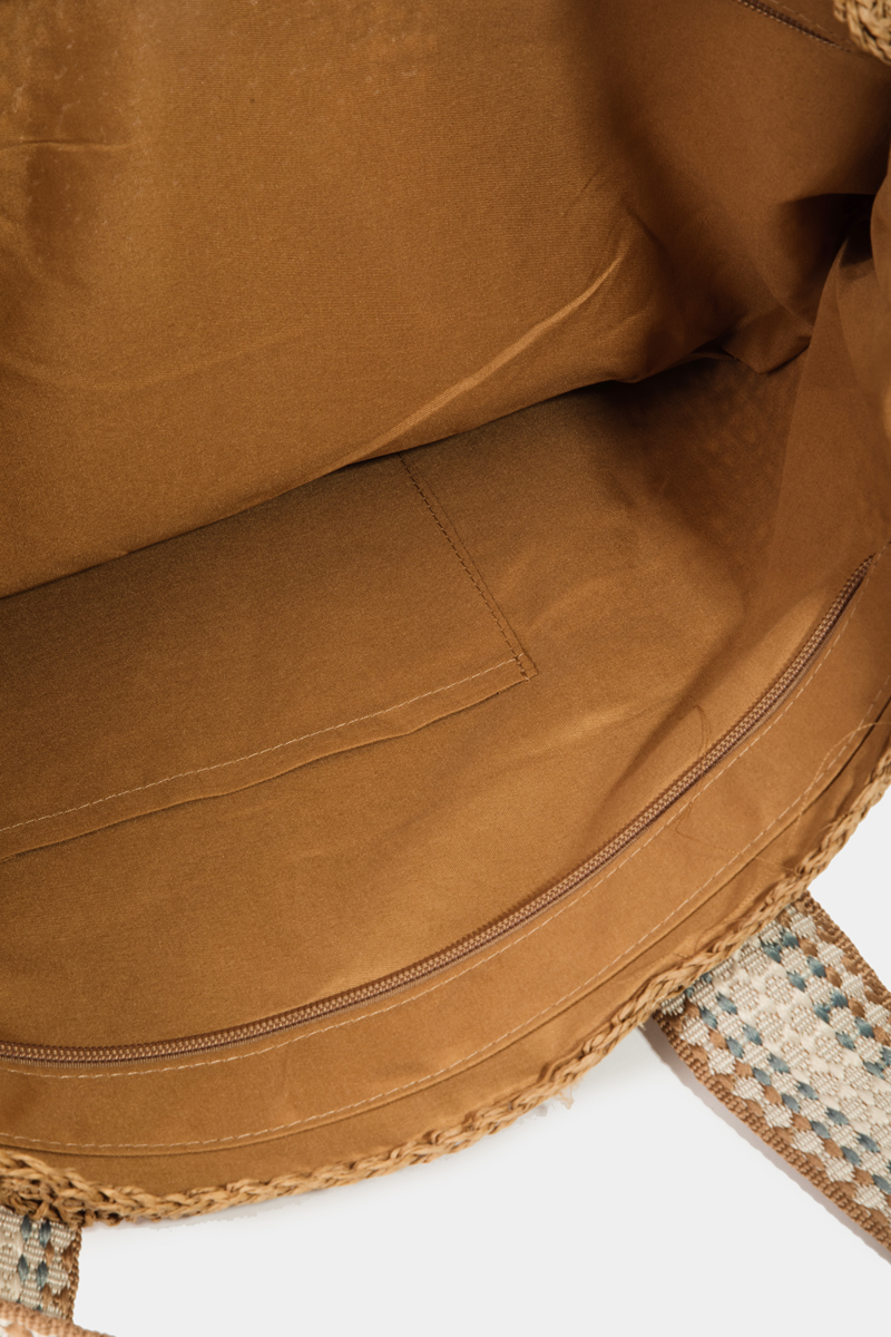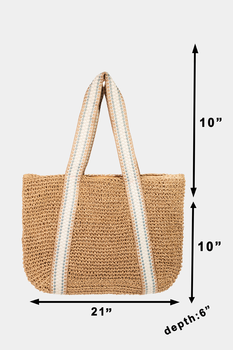 Multi Tone Straw Half Moon Round Handle Tote Bag
