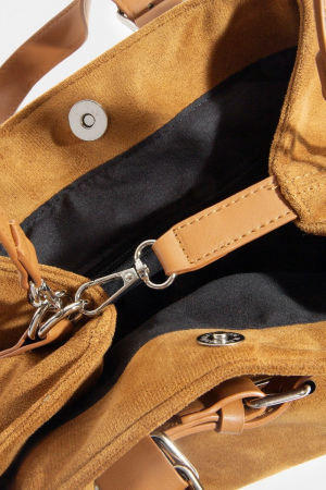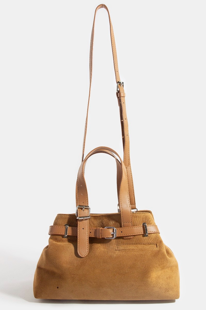 • This hand bag displays a vibrant faux leather buckle strap detail handbag style. Experience the joy of accessorizing with this piece that effortlessly combines versatility and charm.