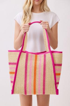 - This tote bag brings a unique oversized striped straw braided style. Experience a subtle blend of modernity and classic charm as this tote bag effortlessly adorns your ensemble.