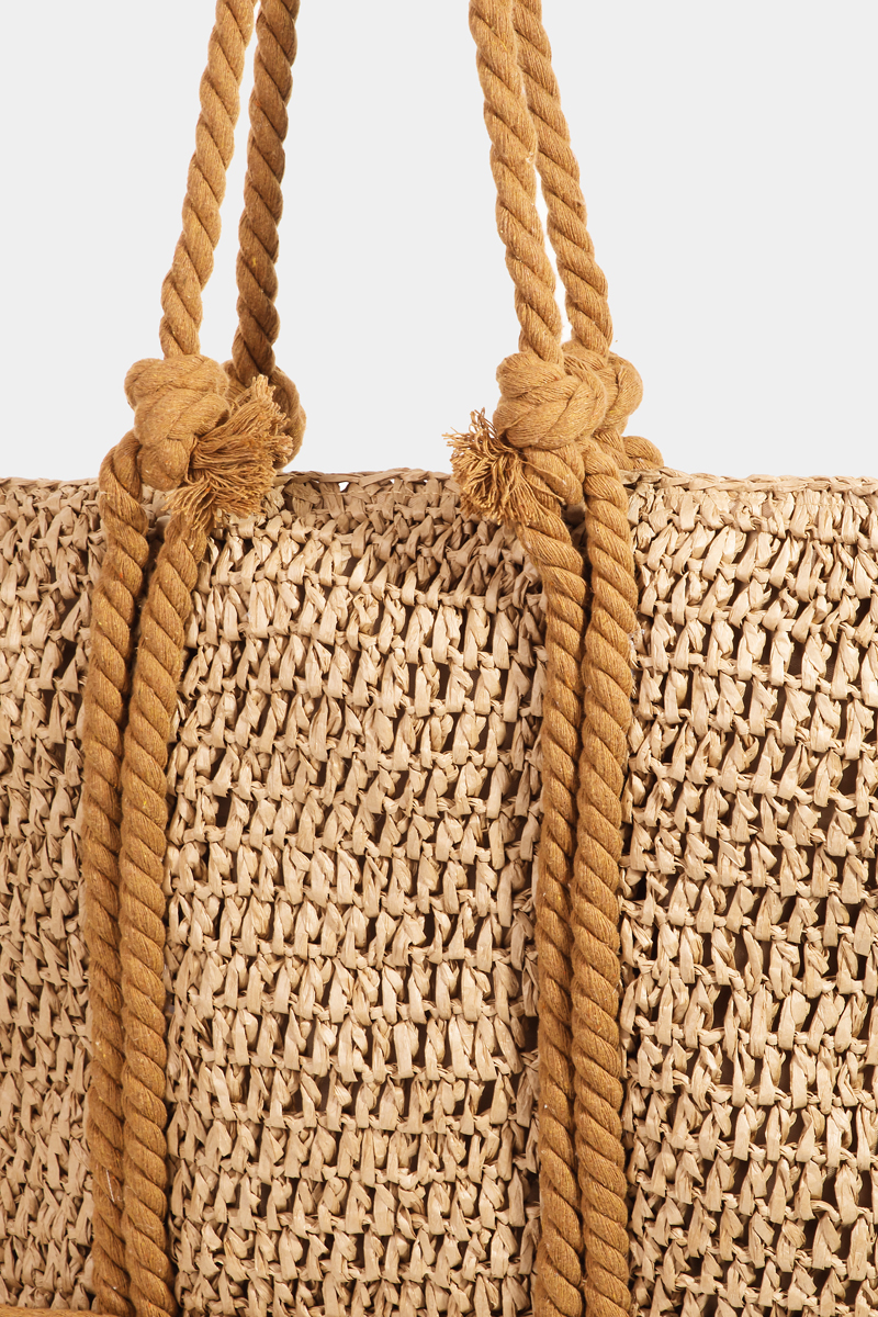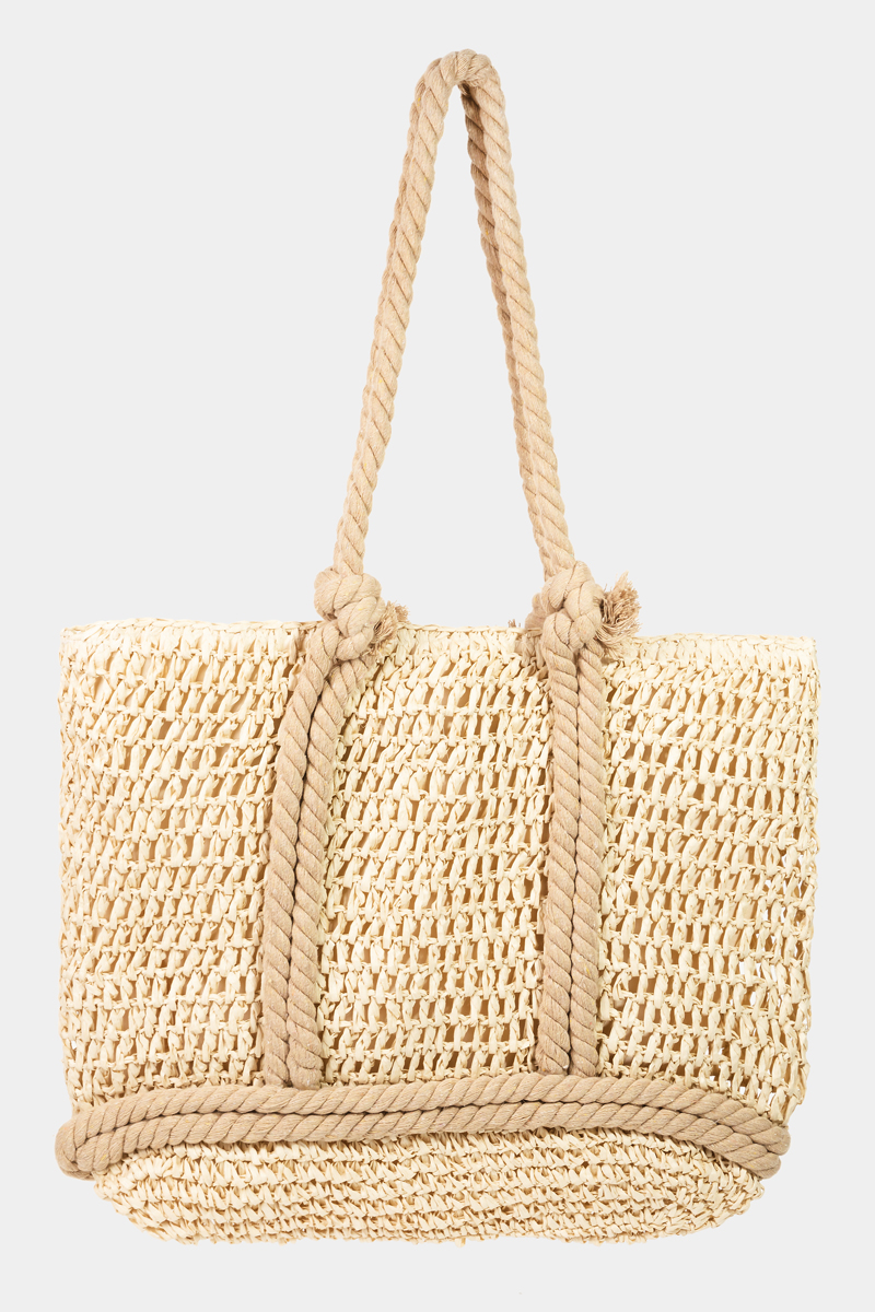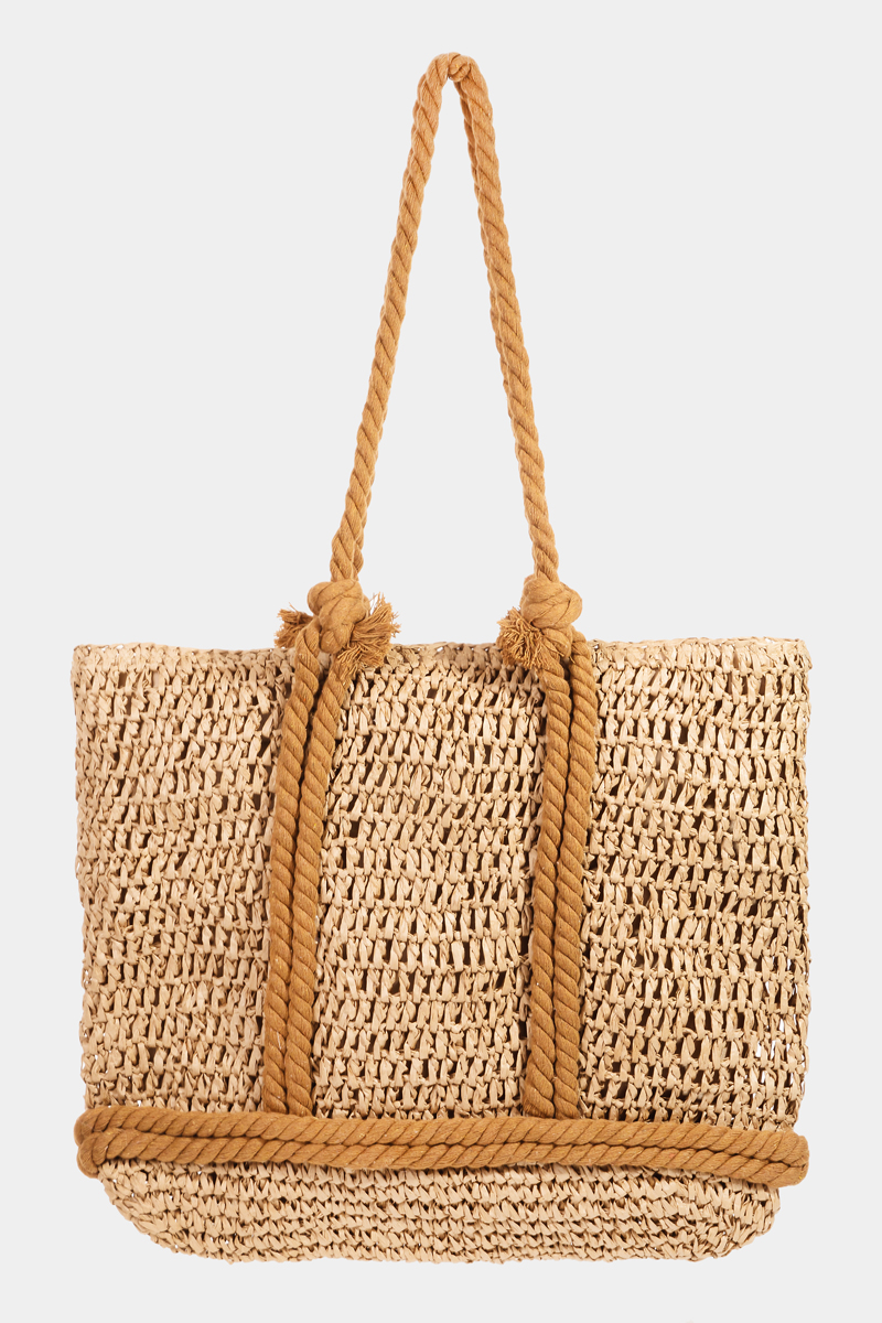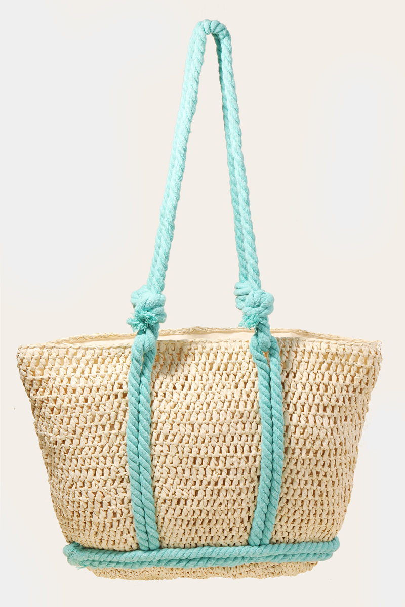 - This tote bag adds a modern rope handle straw braided style. Delight in the nuanced details that make this accessory a testament to fine design and impeccable taste.