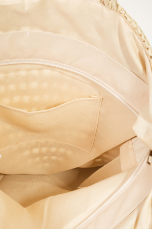 • This tote bag brings a luxurious straw braided beach style. Immerse yourself in the world of understated glamour as this accessory effortlessly exudes timeless appeal.