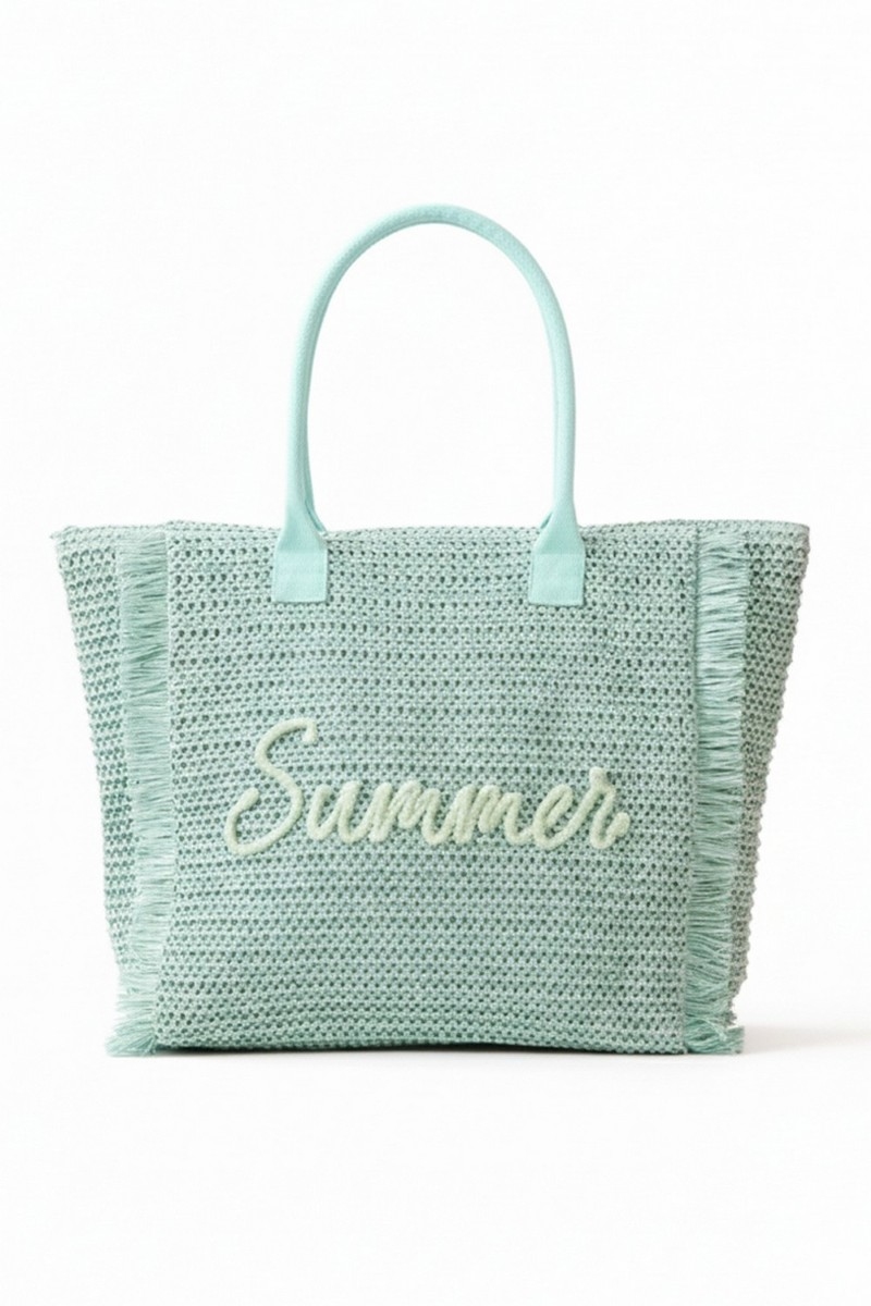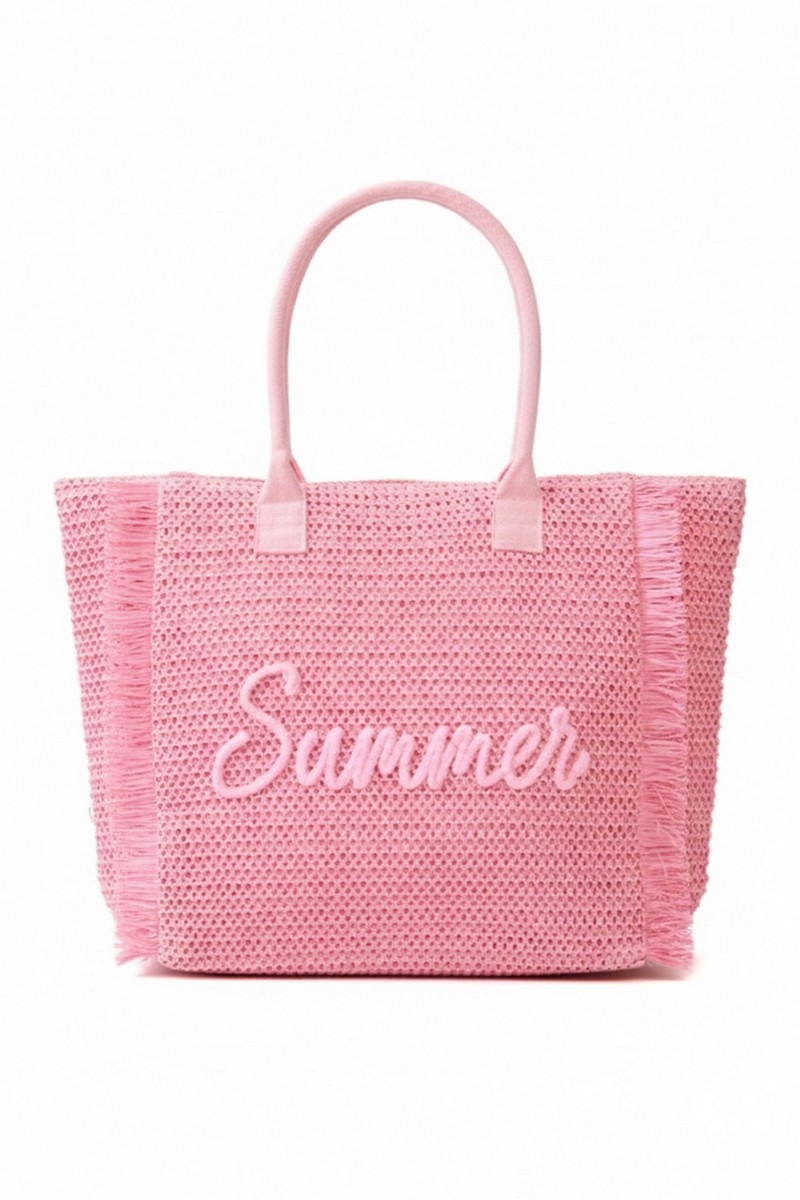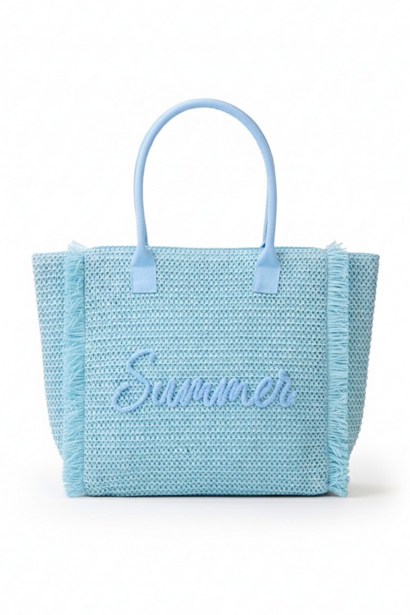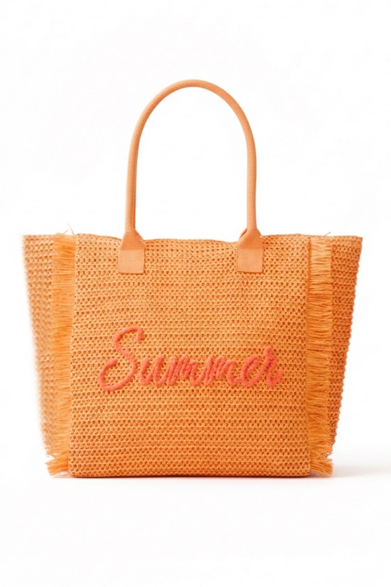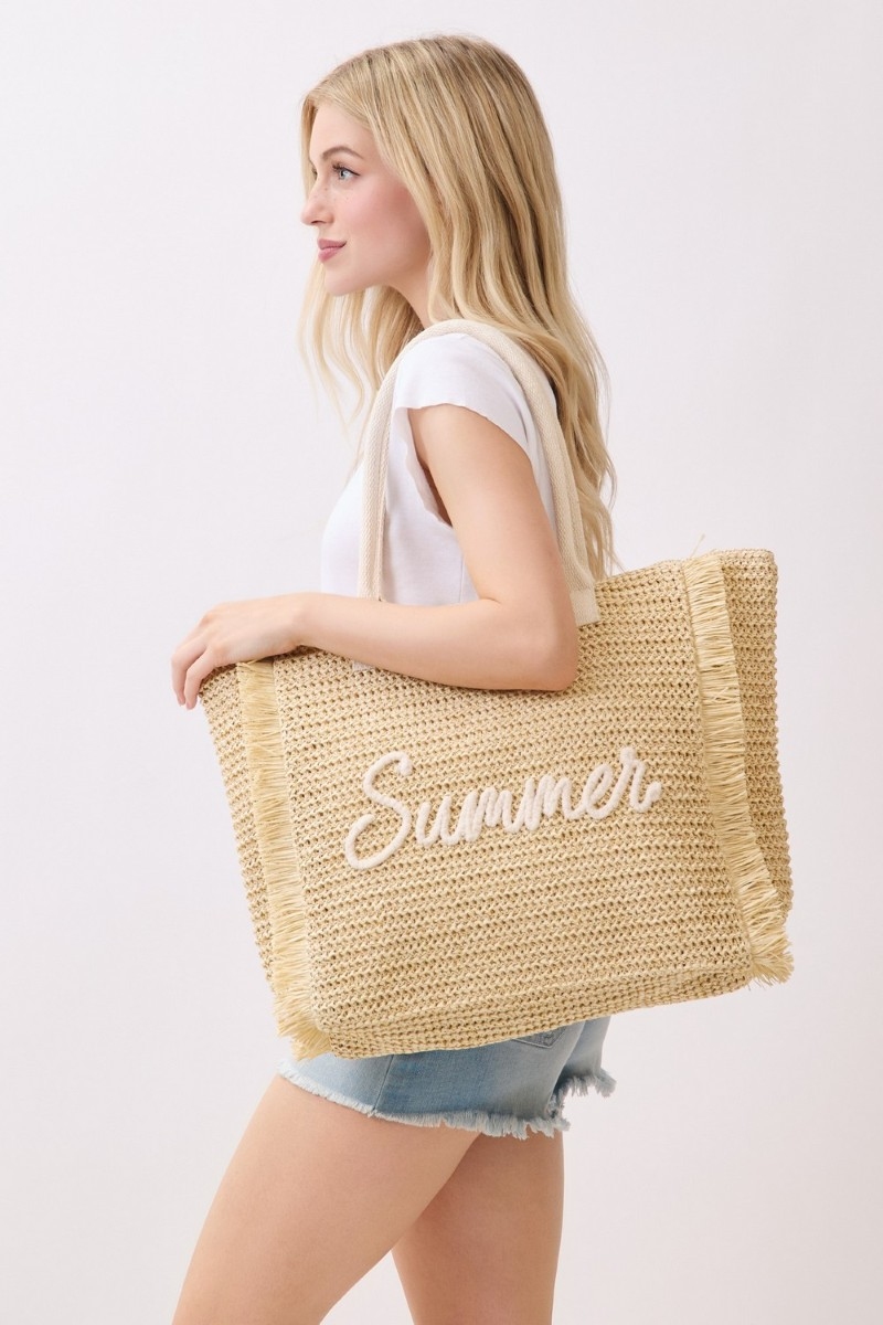 - This tote bag displays a fashionable straw braided summer print style. Unveil a new dimension of sophistication as this tote bag effortlessly enhances the elegance of your ensemble.