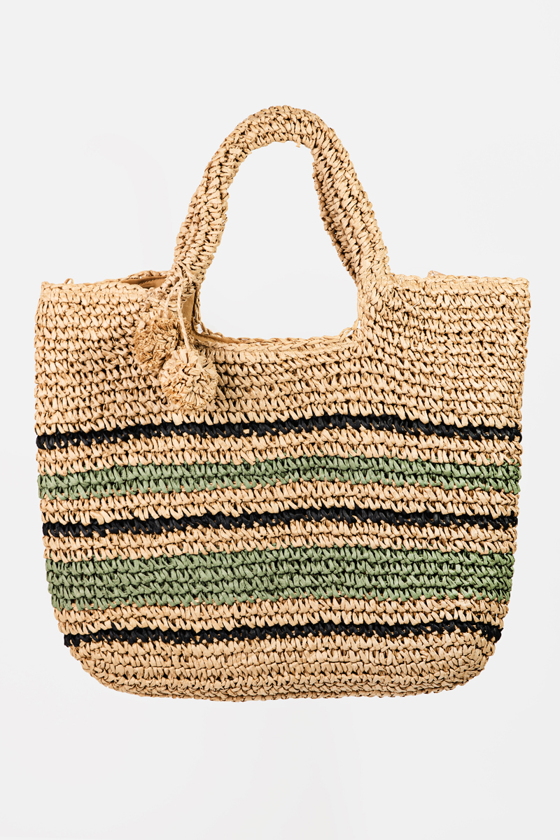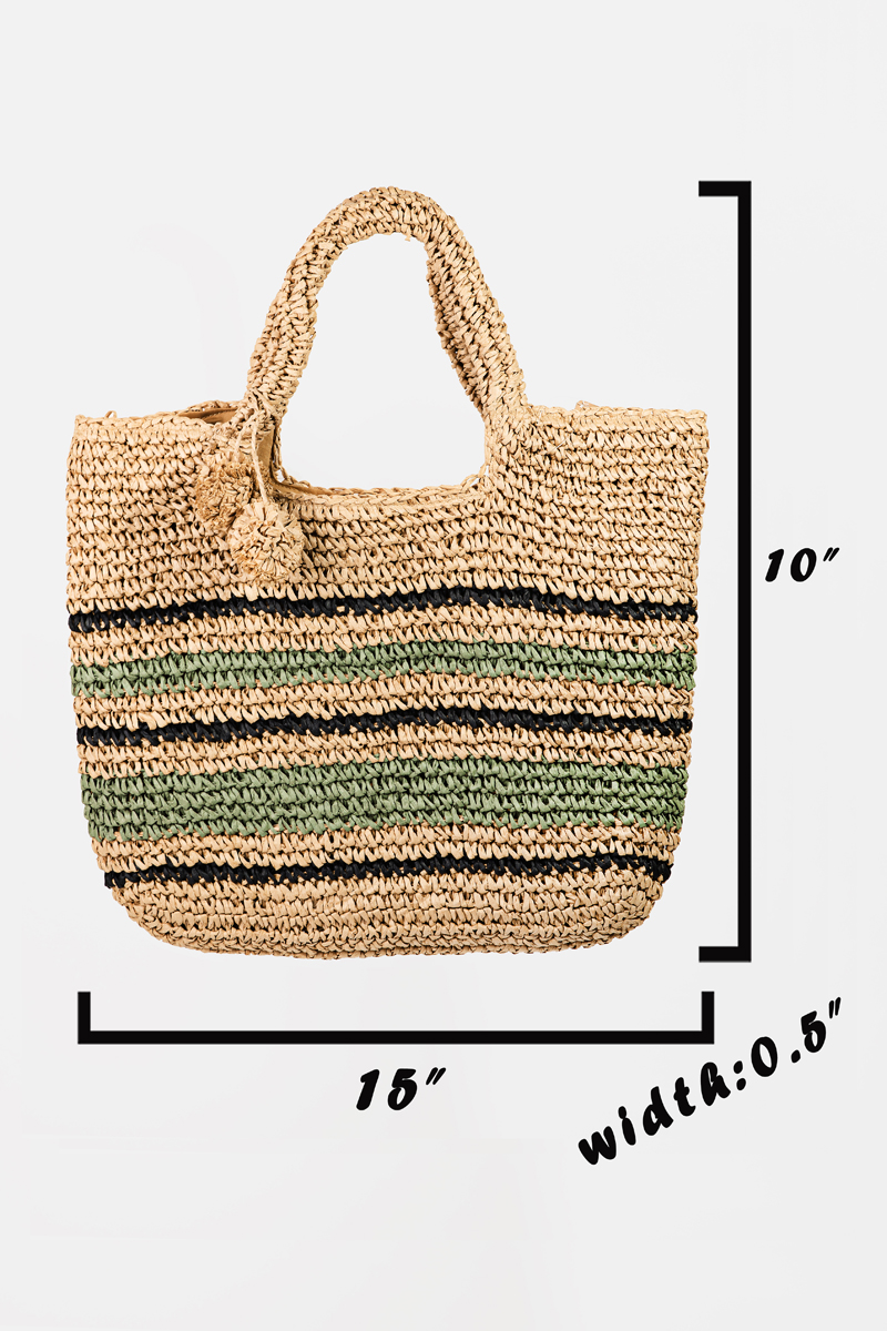 Striped Straw Weave Round Rope Handle Tote Bag