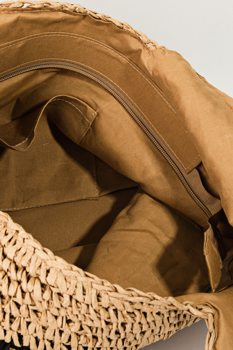Multi Tone Straw Half Moon Round Handle Tote Bag