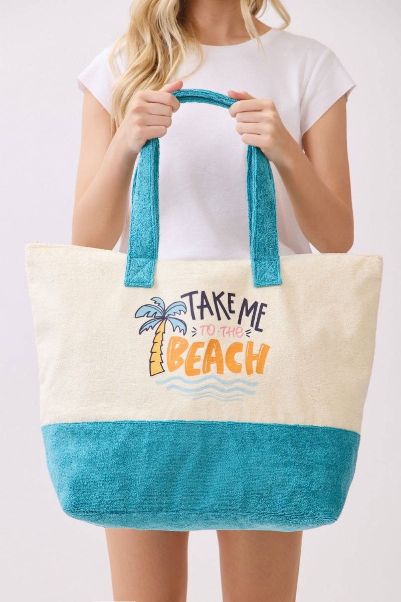 - This tote bag brings a luxurious take me to the beach terry style. Witness the transformative power of accessories as this piece effortlessly redefines your fashion narrative.