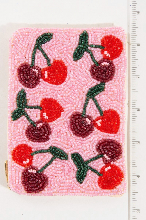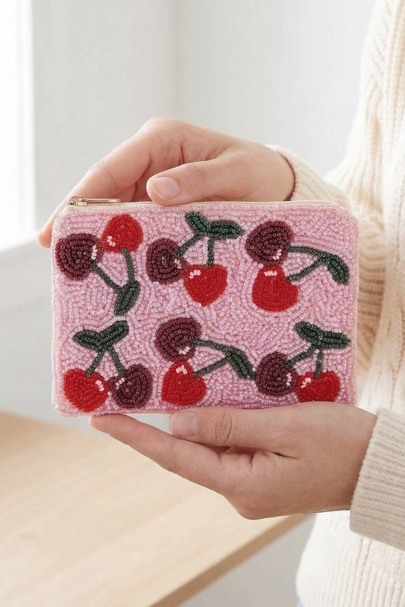 - This coin purse displays a vibrant two tone cherries seed beaded style. Elevate your ensemble with this coin purse that effortlessly captures the essence of refined fashion.