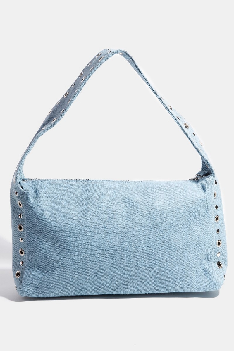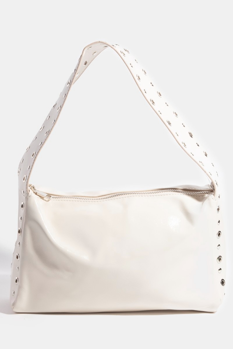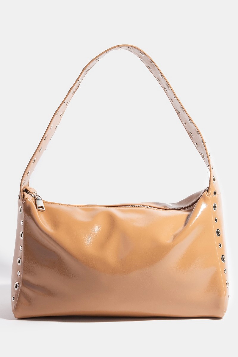 • This hand bag displays a fashionable wide boxy grommet style. Immerse yourself in the world of understated glamour as this hand bag effortlessly exudes timeless appeal.
