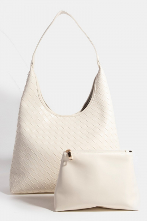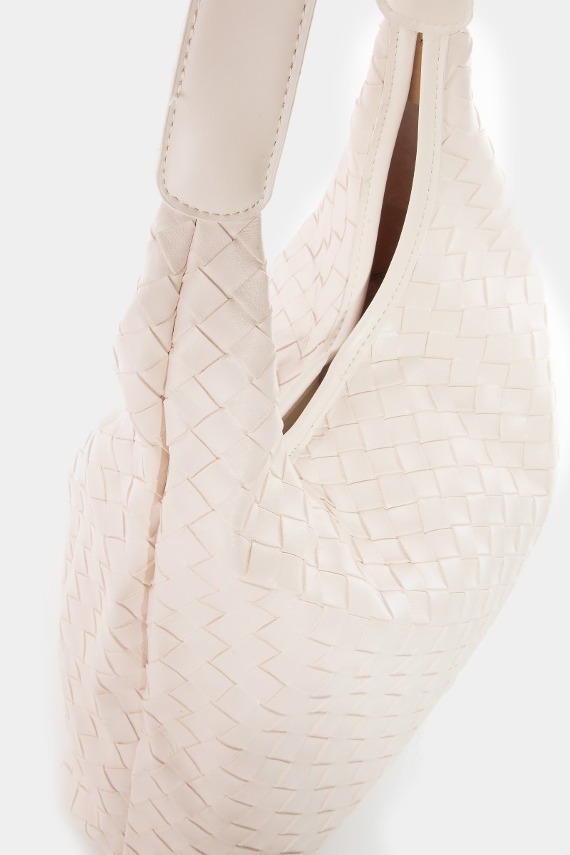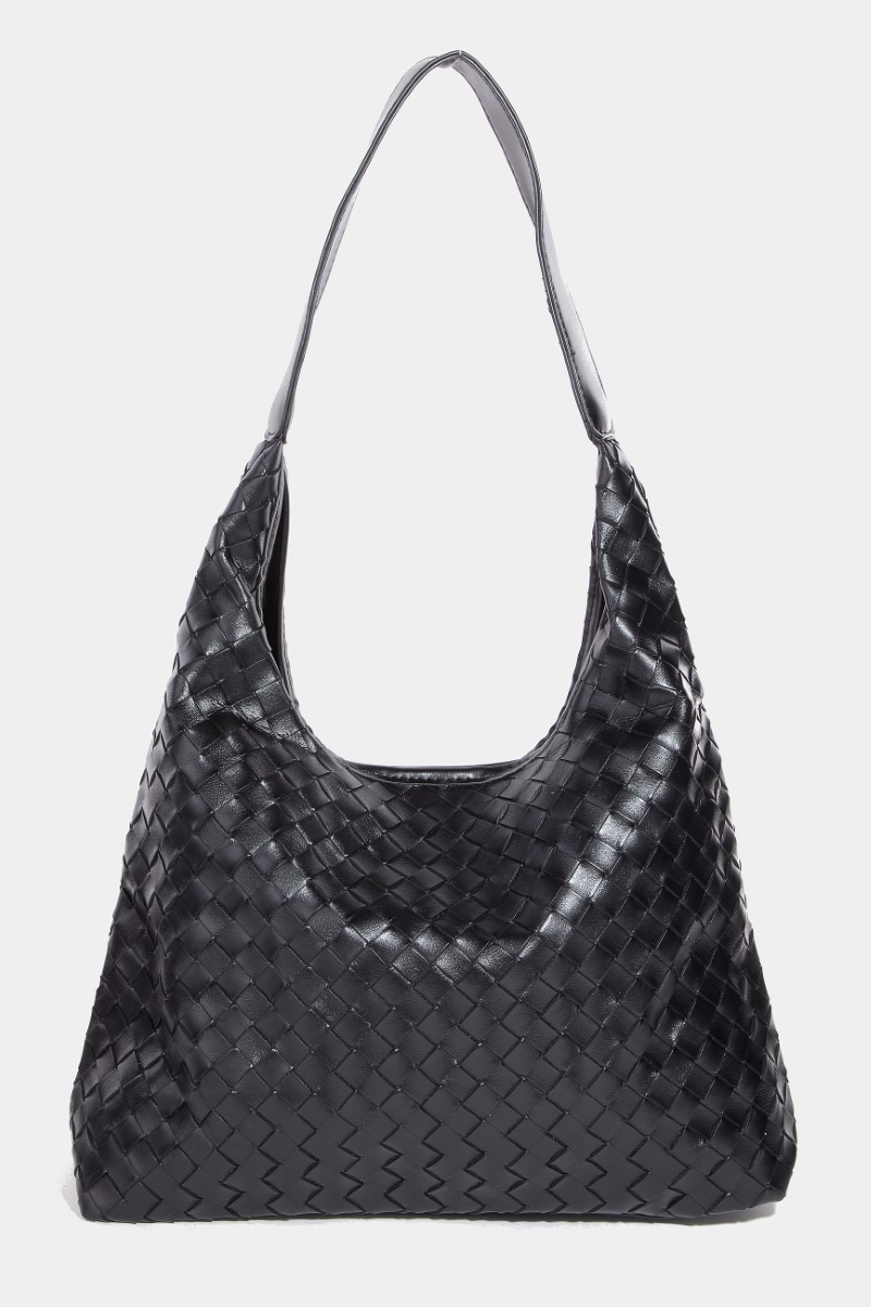 - This tote bag showcases a timeless woven faux leather style. Savor the allure of detailed craftsmanship in this exquisite tote bag.