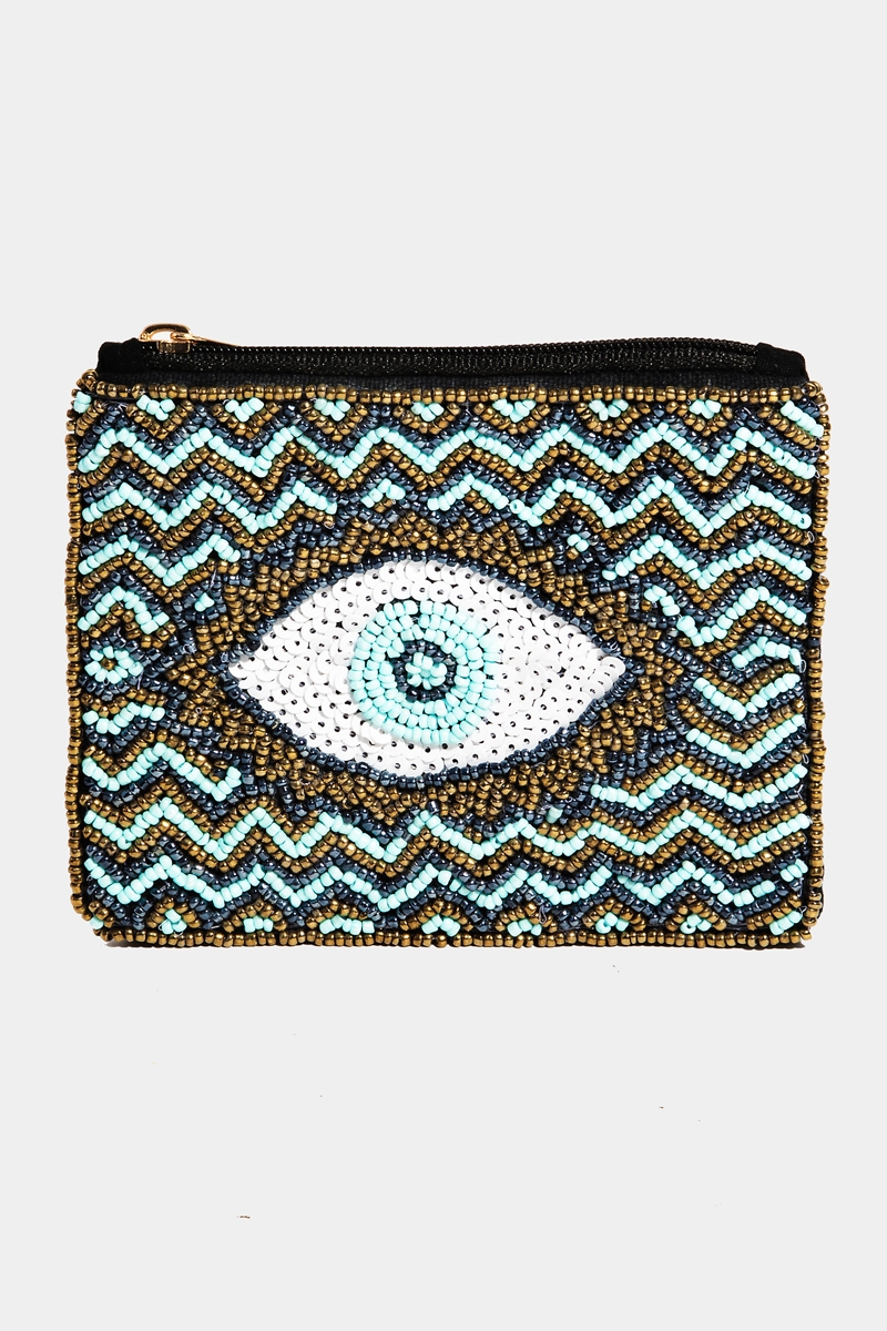 - This brings a unique zigzag striped evil eye beaded coin purse style. Experience refined sophistication with this understated yet stylish piece.