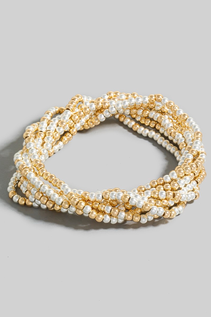 • This bracelet adds a modern 7pc mini metallic beaded set style. Delight in the nuanced details that make this bracelet a testament to fine design and impeccable taste.