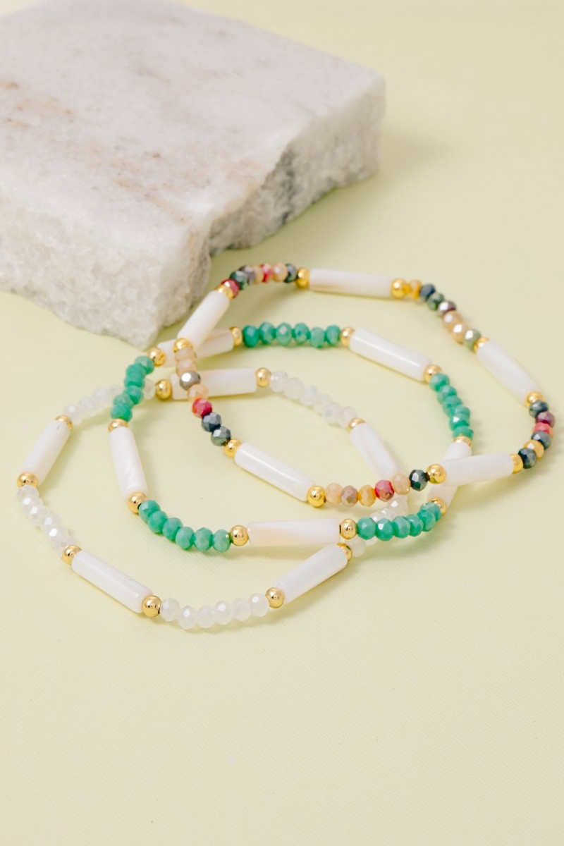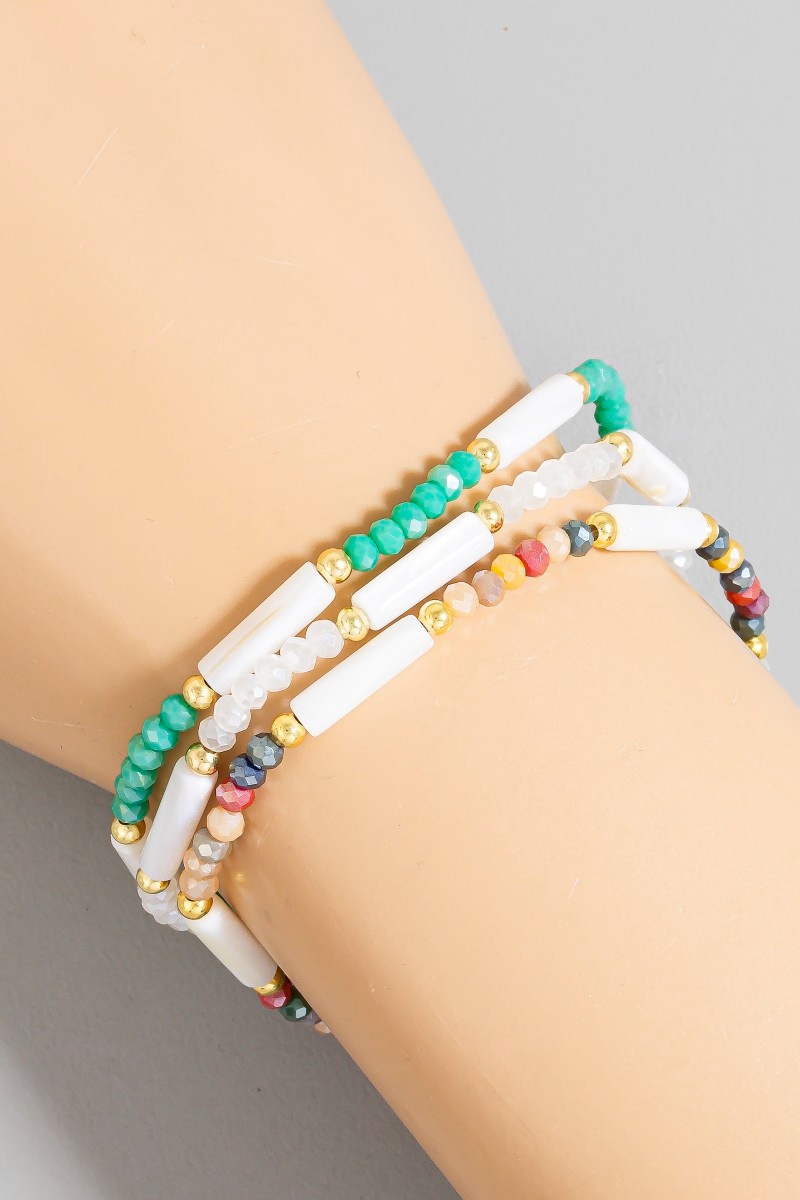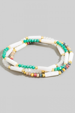 - This bracelet features a fashionable assorted beaded bar set style. Unveil a new dimension of sophistication as this bracelet effortlessly enhances the elegance of your ensemble.