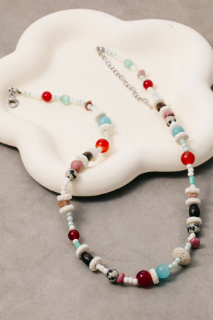 - This necklace introduces a stunning assorted colorful bead style. Witness the perfect fusion of style and functionality as this necklace effortlessly complements your lifestyle.