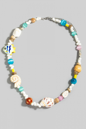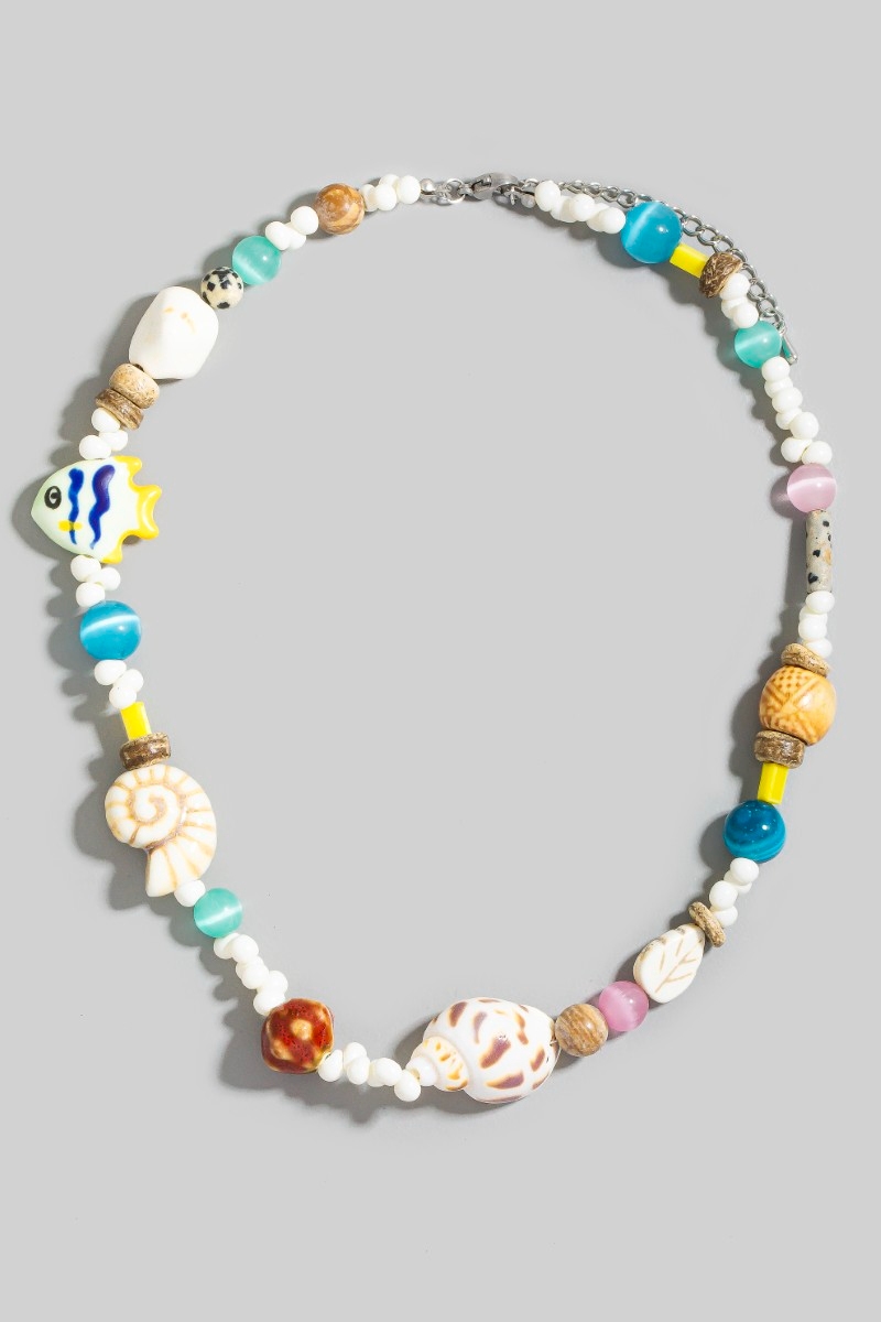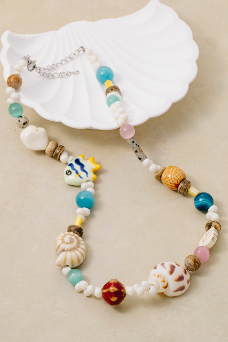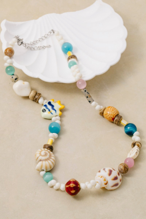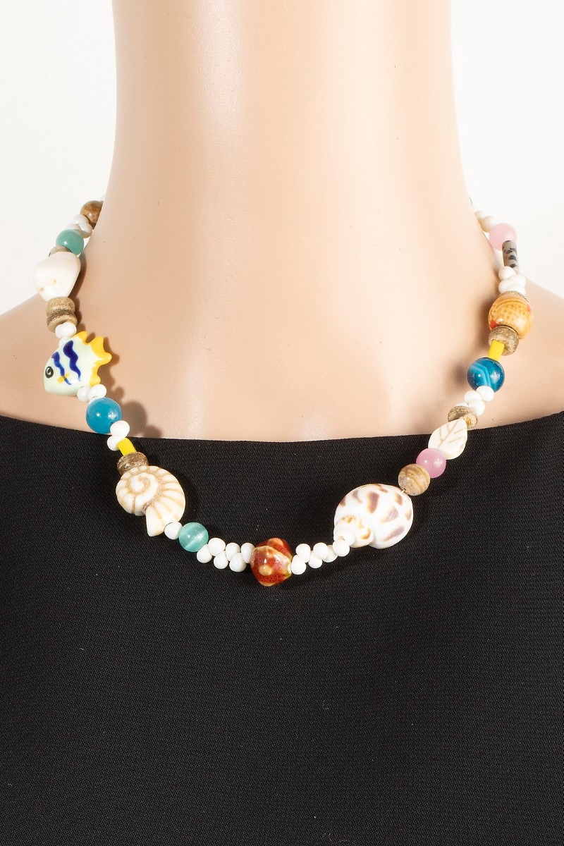 • This necklace showcases a timeless assorted sealife bead style. Revel in the intricate design that effortlessly distinguishes this necklace, making it a statement piece.