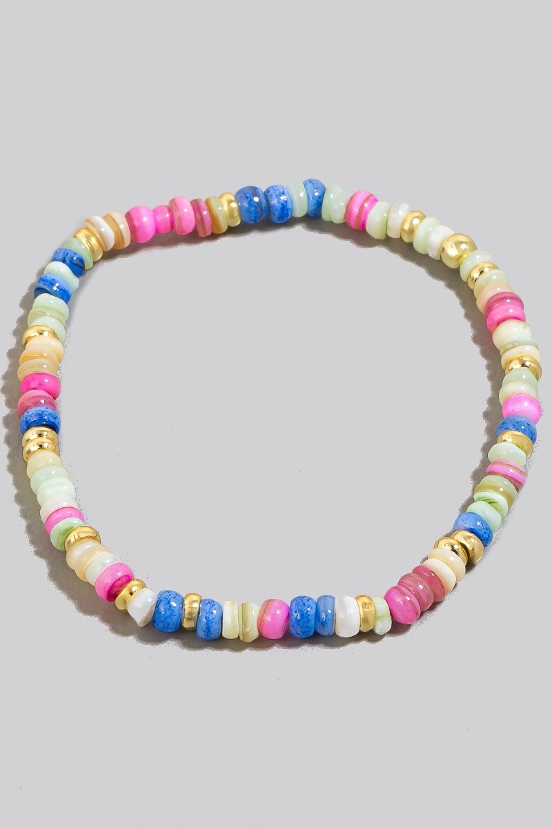 • This bracelet displays a vibrant beaded gemstone set style. Experience a subtle blend of modernity and classic charm as this bracelet effortlessly adorns your ensemble.