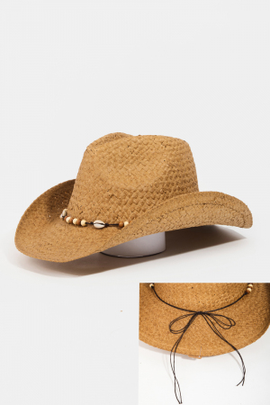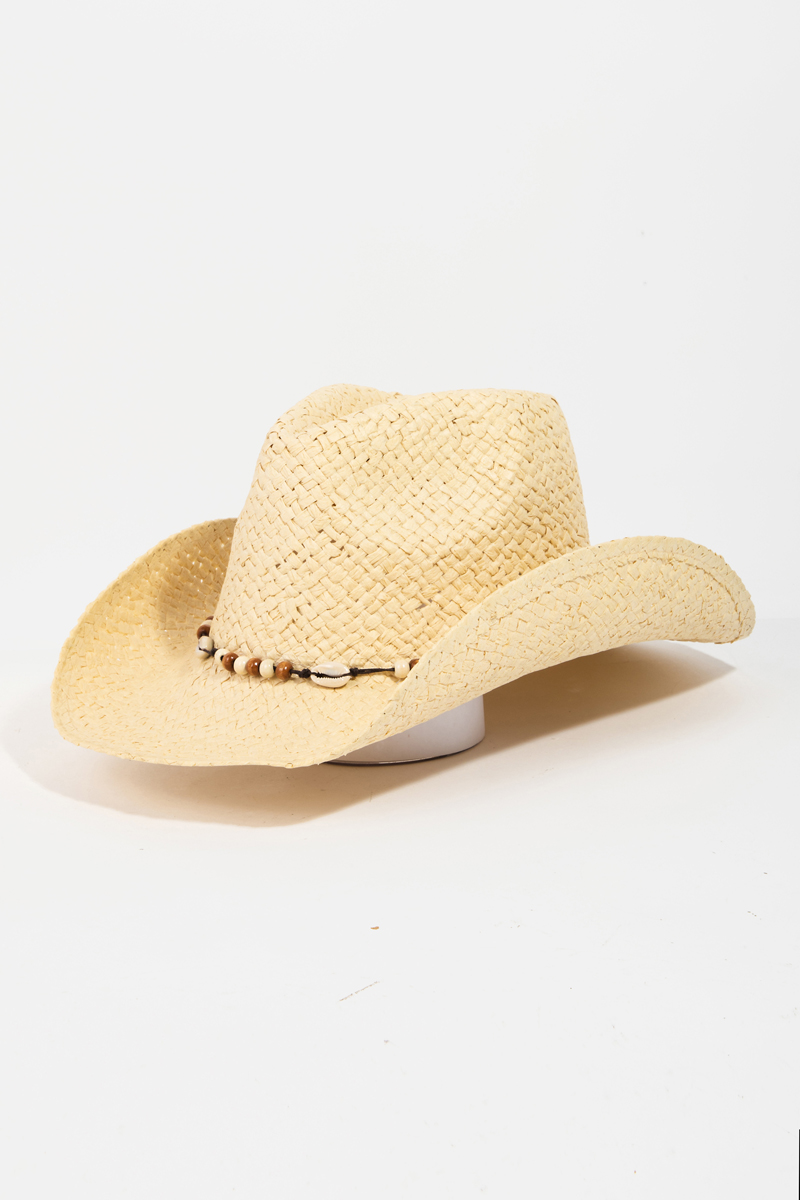 - This cowboy hat brings a unique beaded cowrie shell straw weave style. Experience a burst of creativity in accessorizing as this piece effortlessly sets the tone for your unique style.