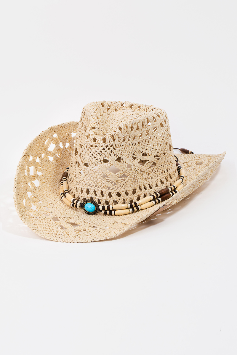 - This cowboy hat introduces a unique straw braided beaded strap style. Savor the allure of detailed craftsmanship in this exquisite cowboy hat.