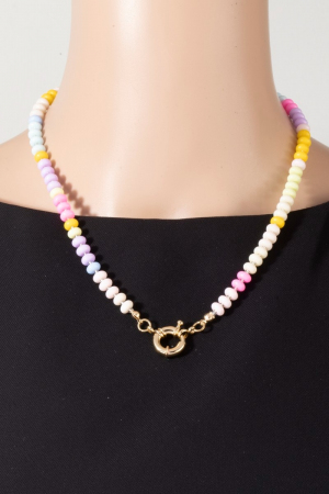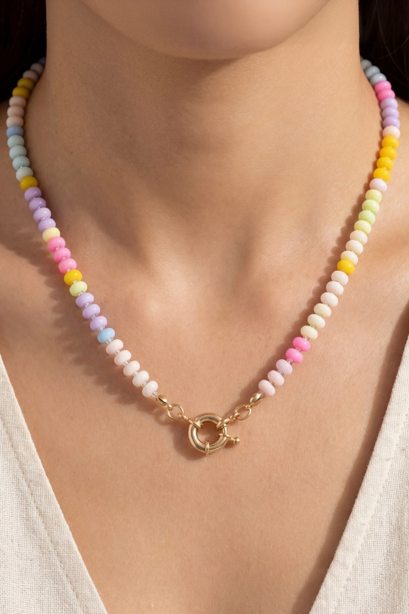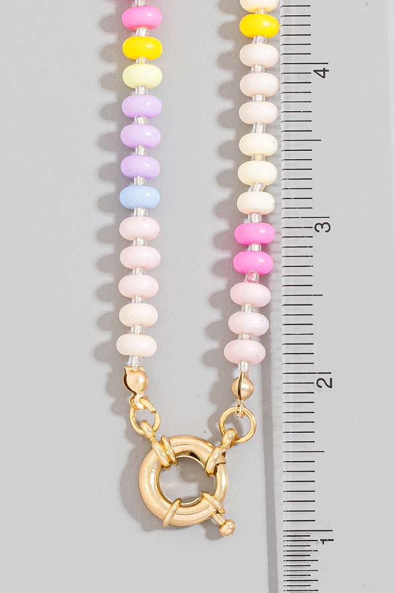 • This necklace adds a modern acrylic bead ring clasp style. Embark on a journey of sartorial refinement as this necklace effortlessly complements your fashion sense.