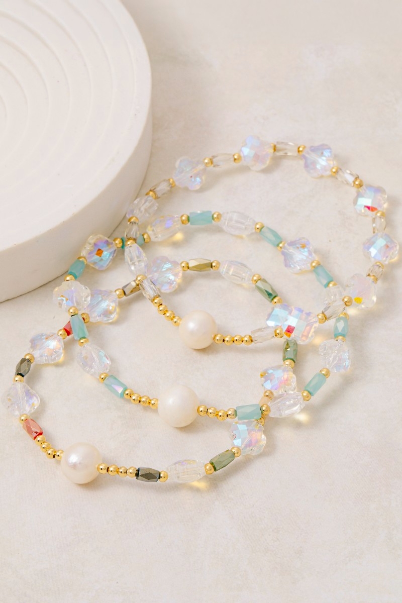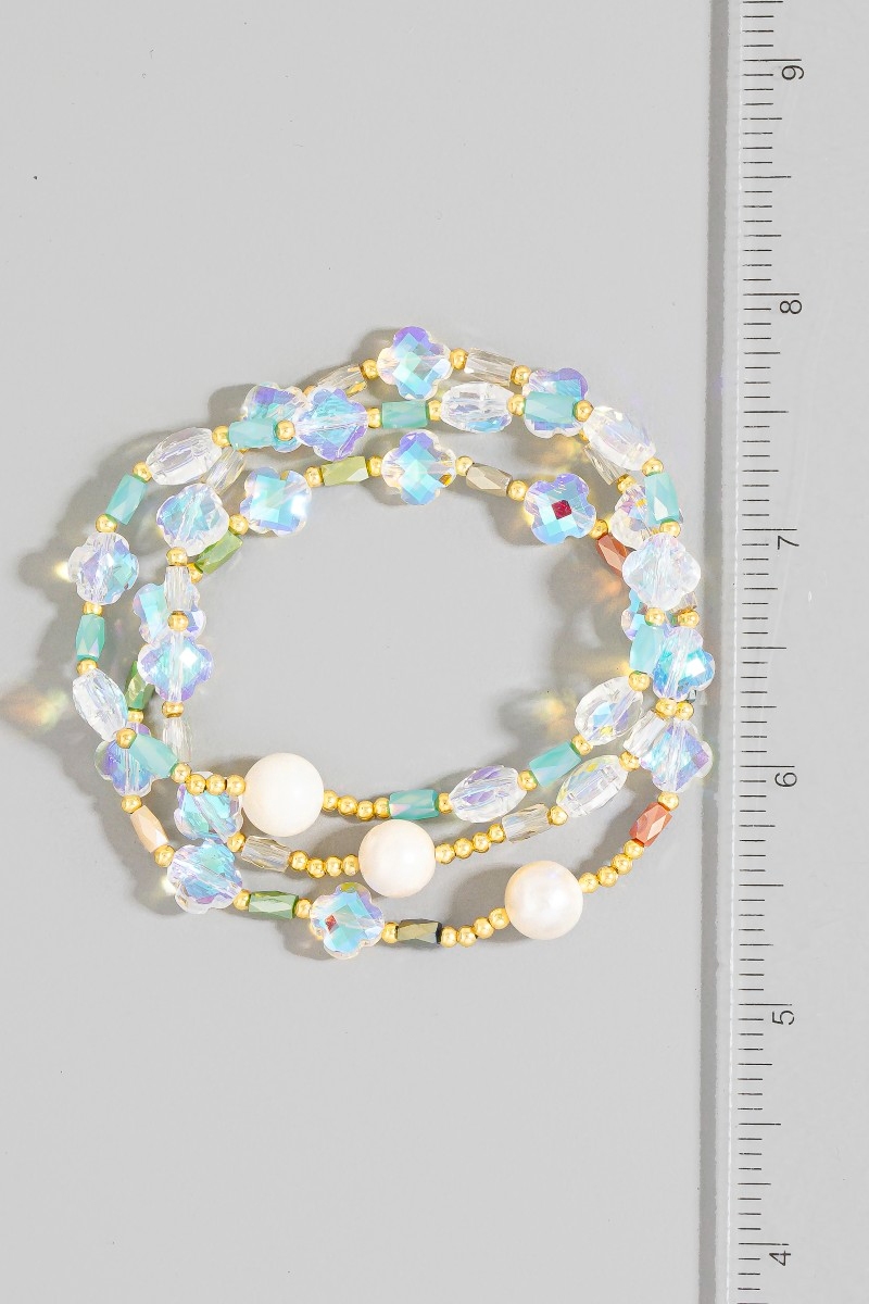 Mixed Pearl And Metallic Beaded Elastic Bracelet