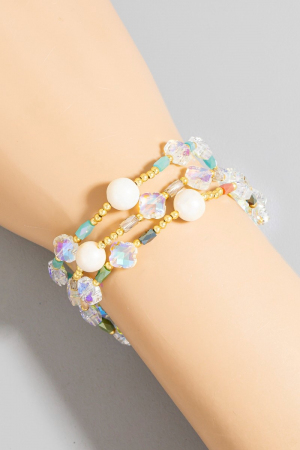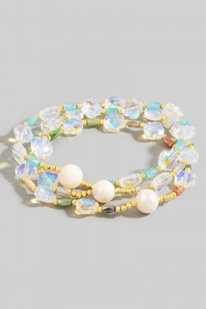 • This bracelet displays a fashionable assorted multi pearl bead set style. Celebrate individual style with this versatile, eye-catching addition.