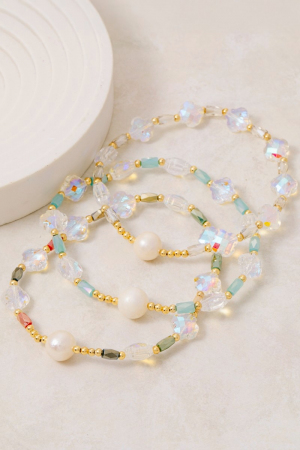 Shell Charms Faceted And Metallic Beaded Bracelet Set