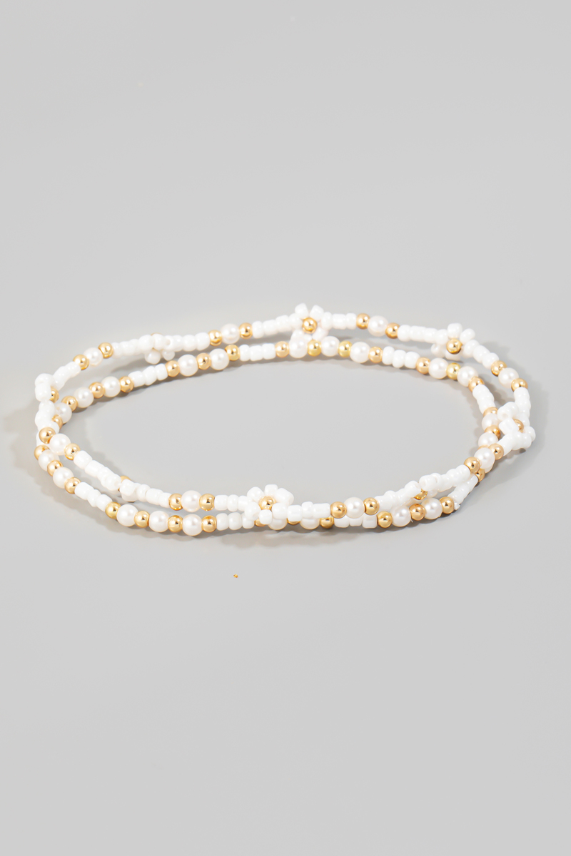 • This bracelet introduces a stunning beaded flower set style. Savor the allure of detailed craftsmanship in this exquisite accessory.