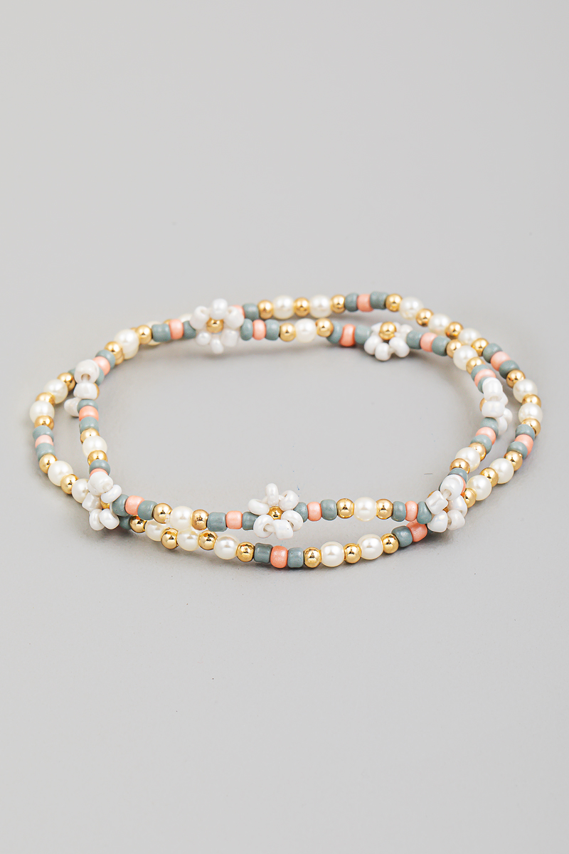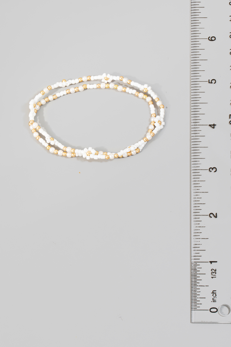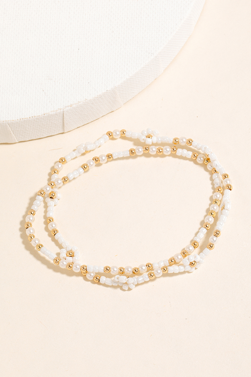 Mixed Pearl And Metallic Beaded Elastic Bracelet