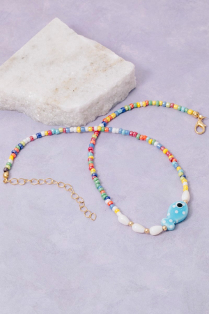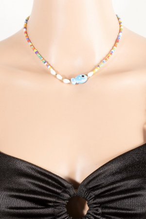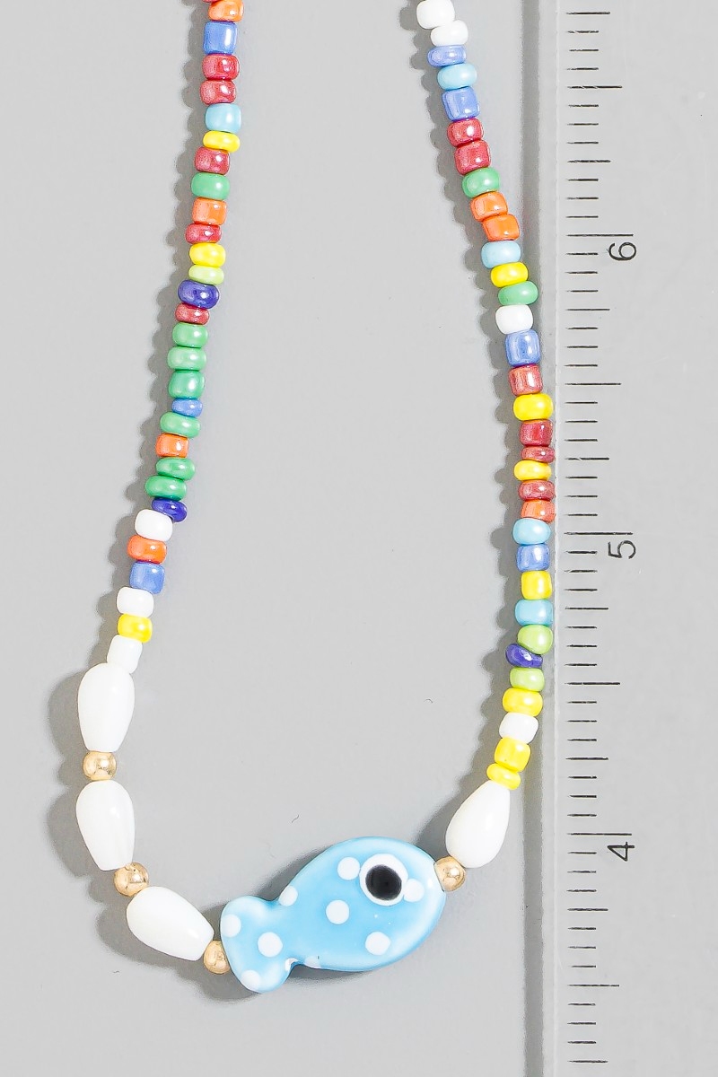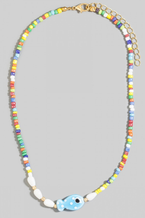 - This necklace features a fashionable ceramic fish pendant glossy colorful beaded style. Explore a blend of classic charm and contemporary flair.